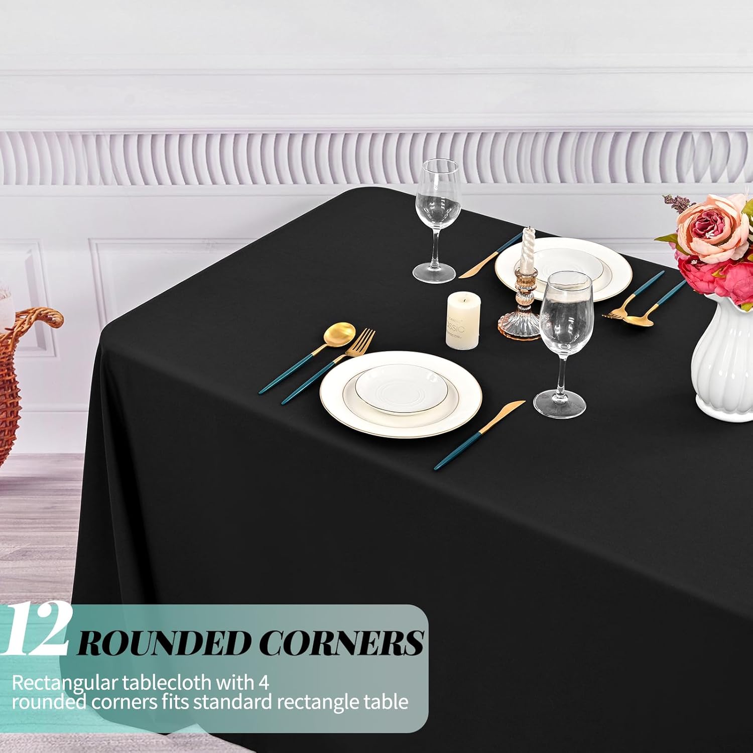 12 Pack Polyester Tablecloth 90 x 156 Inch Black Tablecloth for 8 Ft Rectangle Tables,Washable Fabric Table Covers Polyester Table Clothes for Wedding Parties Banque