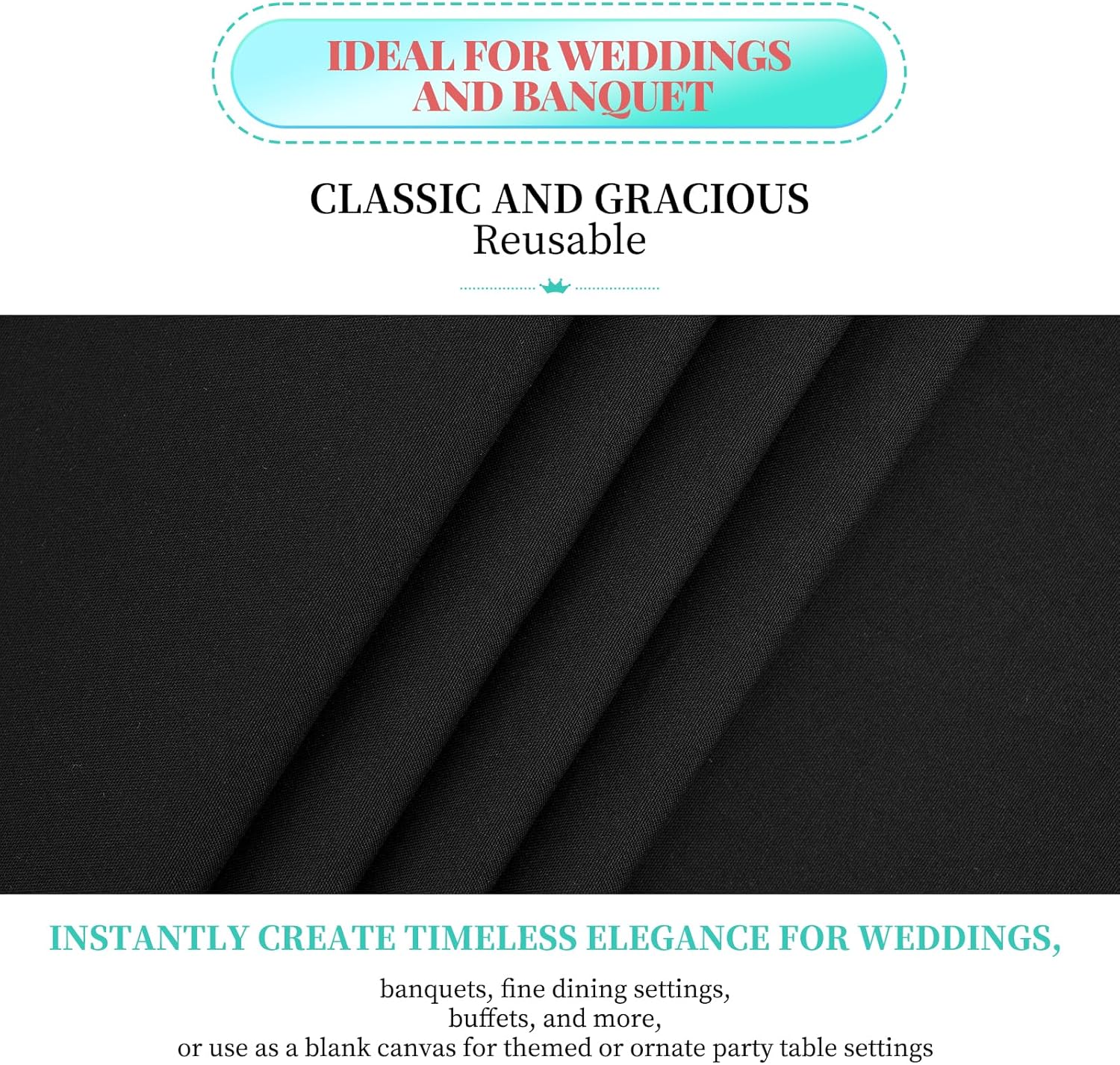 - š„ćPremium Tablecloth FabricsćYou can get 12 pieces black tablecloth, our tablecloth is made of soft premium polyester fabric that resists wrinkling for an always crisp, polished look. These materials are as skin-friendly as they are environmentally friendly. Protect and decorate your tables.