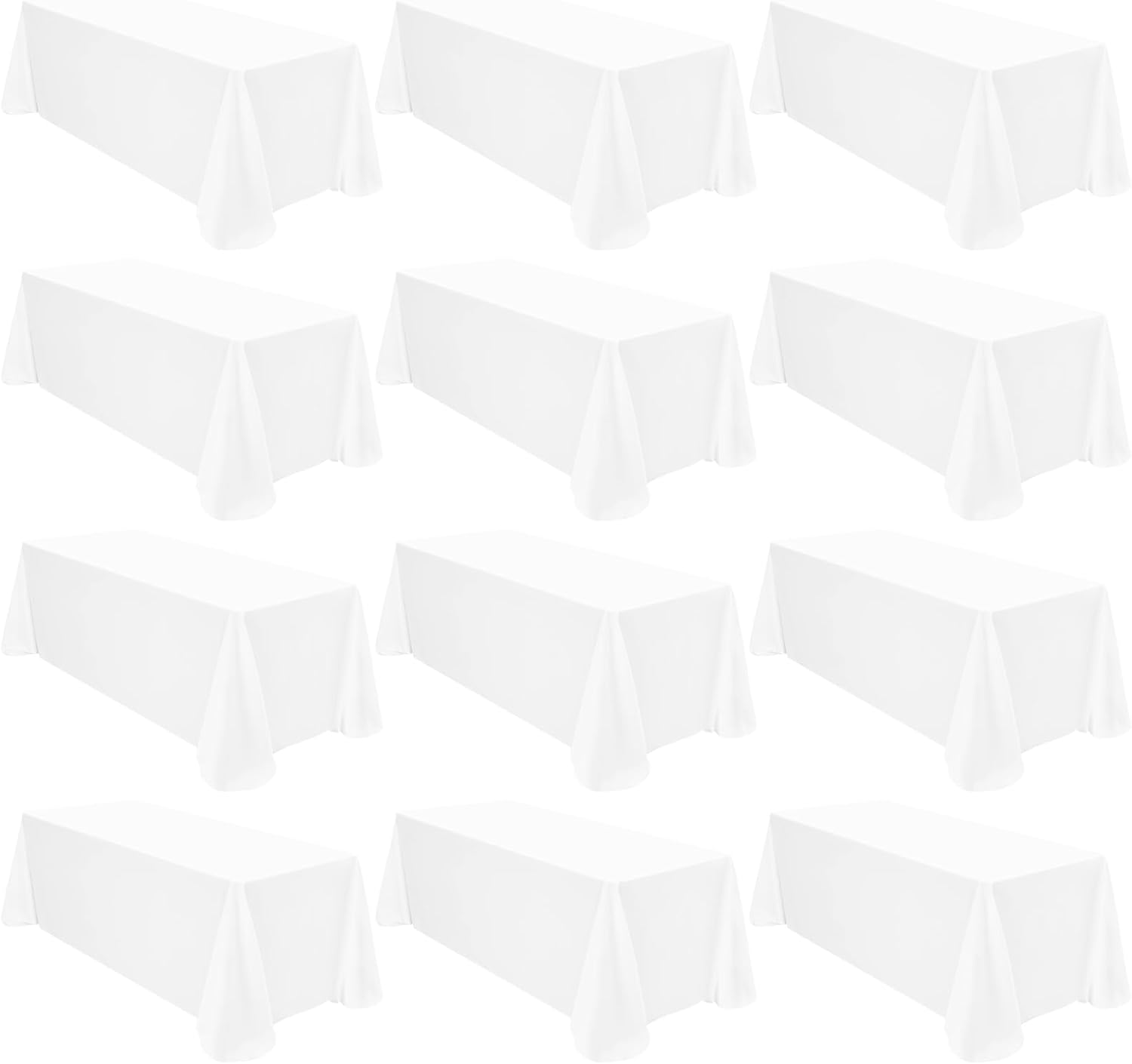 12 Pack Polyester Rectangle Tablecloth 90 x 132 Inch White Tablecloth for 6 Ft Rectangle Tables,Washable Fabric Table Covers Polyester Table Clothes for Wedding Parties Banque