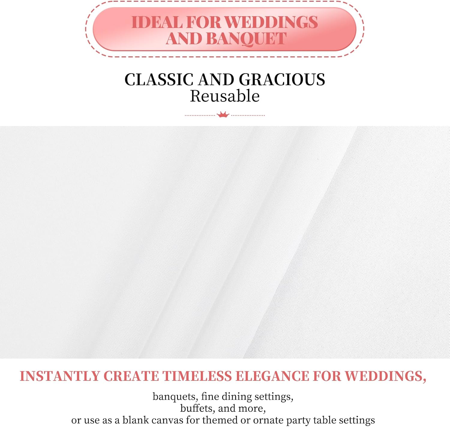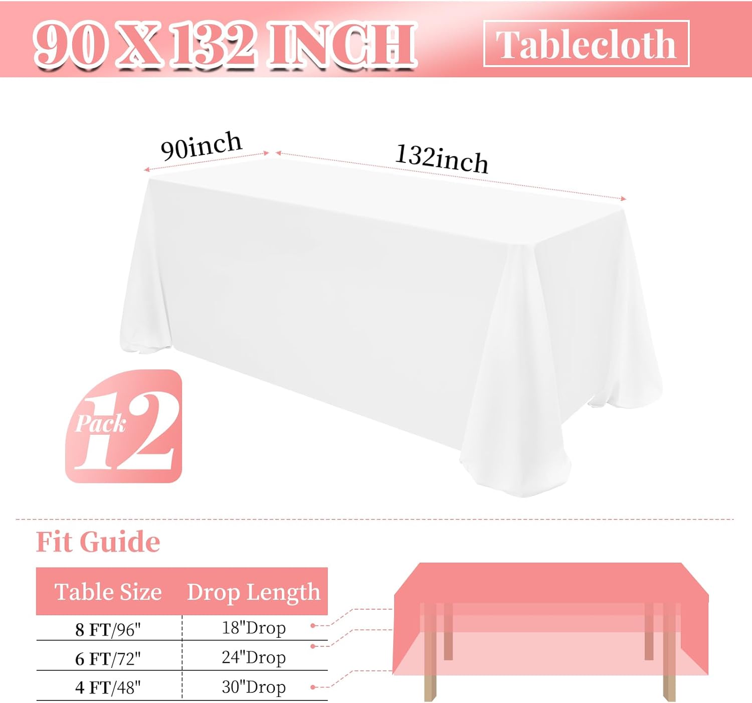 - 【Size】This white table cloth is 90 x 132 Inch, for standard 8ft table, providing 18 inch drop. White table cover is more luxurious, classic and gracious, for both formal & casual settings and makes a great for all occasions.