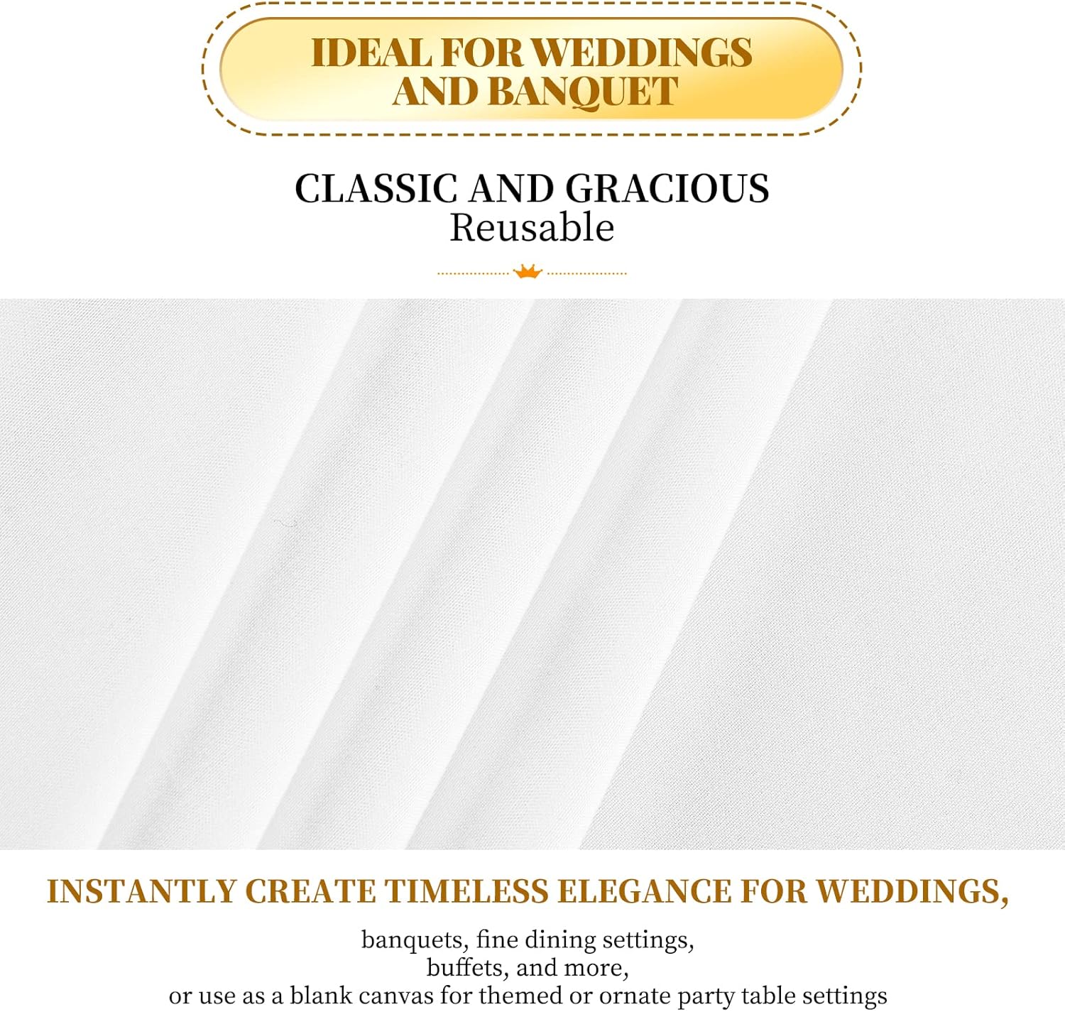 - 【Premium Tablecloth Fabrics】You can get 12 pieces white tablecloth, our tablecloth is made of soft 180 GSM 100% premium polyester fabric that resists wrinkling for an always crisp, polished look. These materials are as skin-friendly as they are environmentally friendly. excellent to protect and decorate your tables.