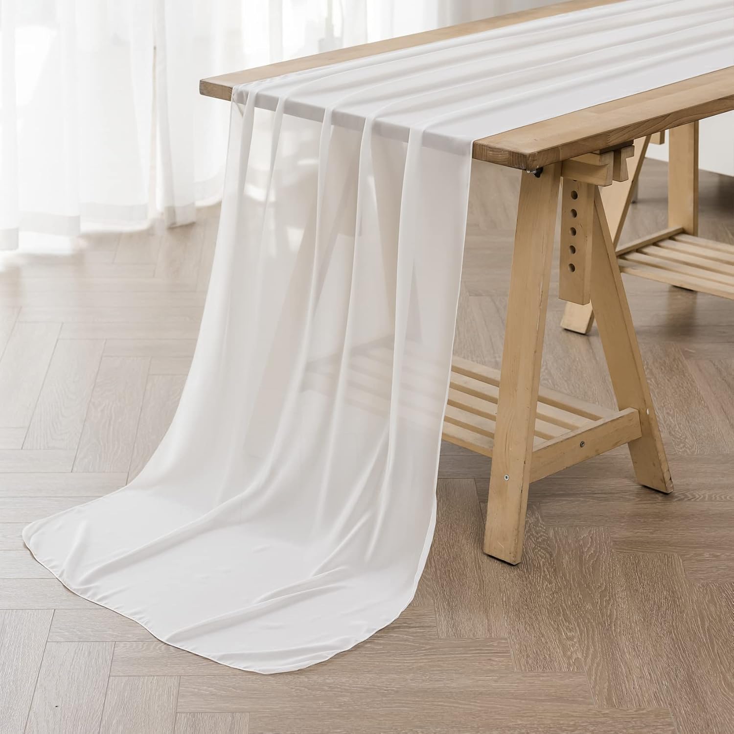 - Style:This colorful chiffon table runner has a flowy and elegant look๏ผtie this romantic white sheer table runner up to create beautiful folds or leave it flowing loose onto the floor,add a luxurious feel to your special events.