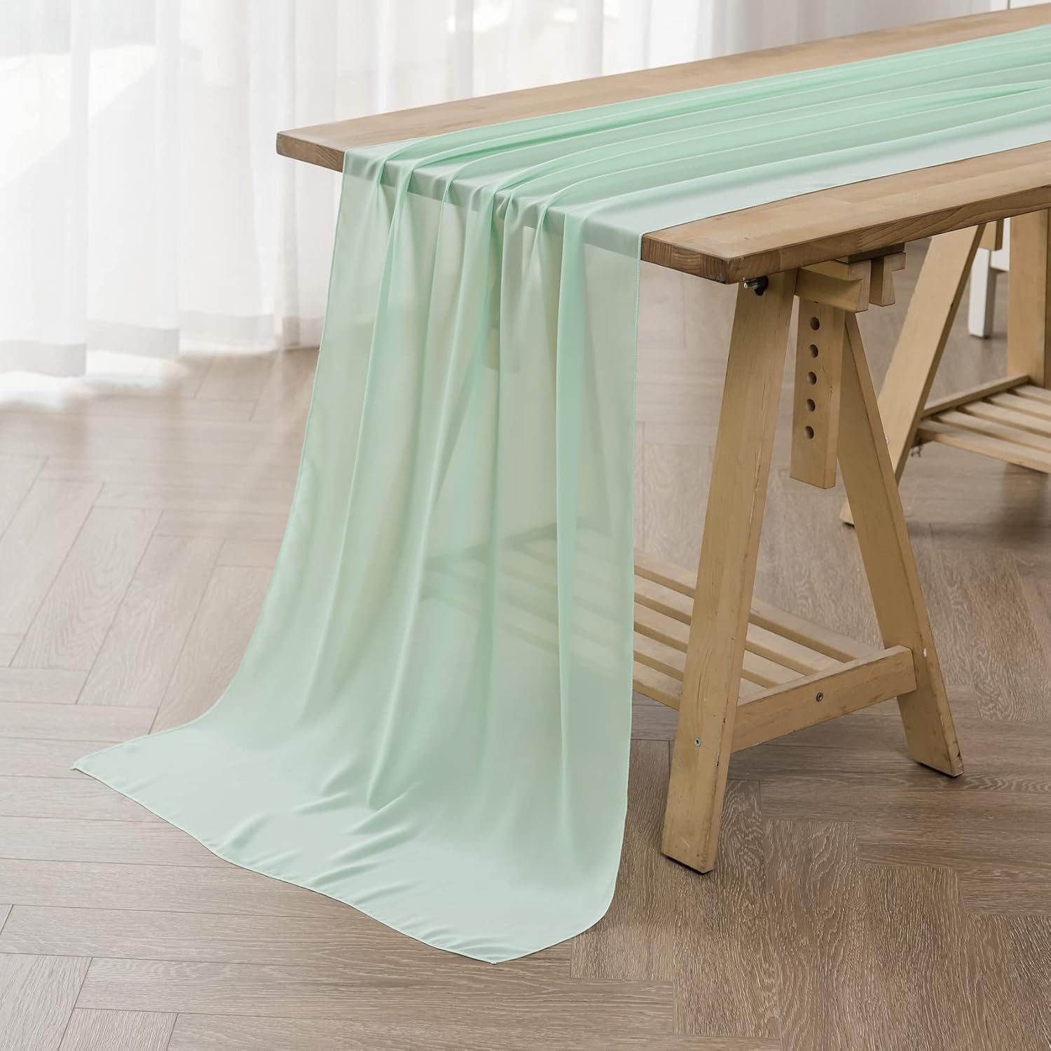 12Pack 9ft Chiffon Table Runner14x108 Inch Sheer Romantic Table Runner for Wedding Birthday Party Bridal Shower Outdoor Decoration-Mint