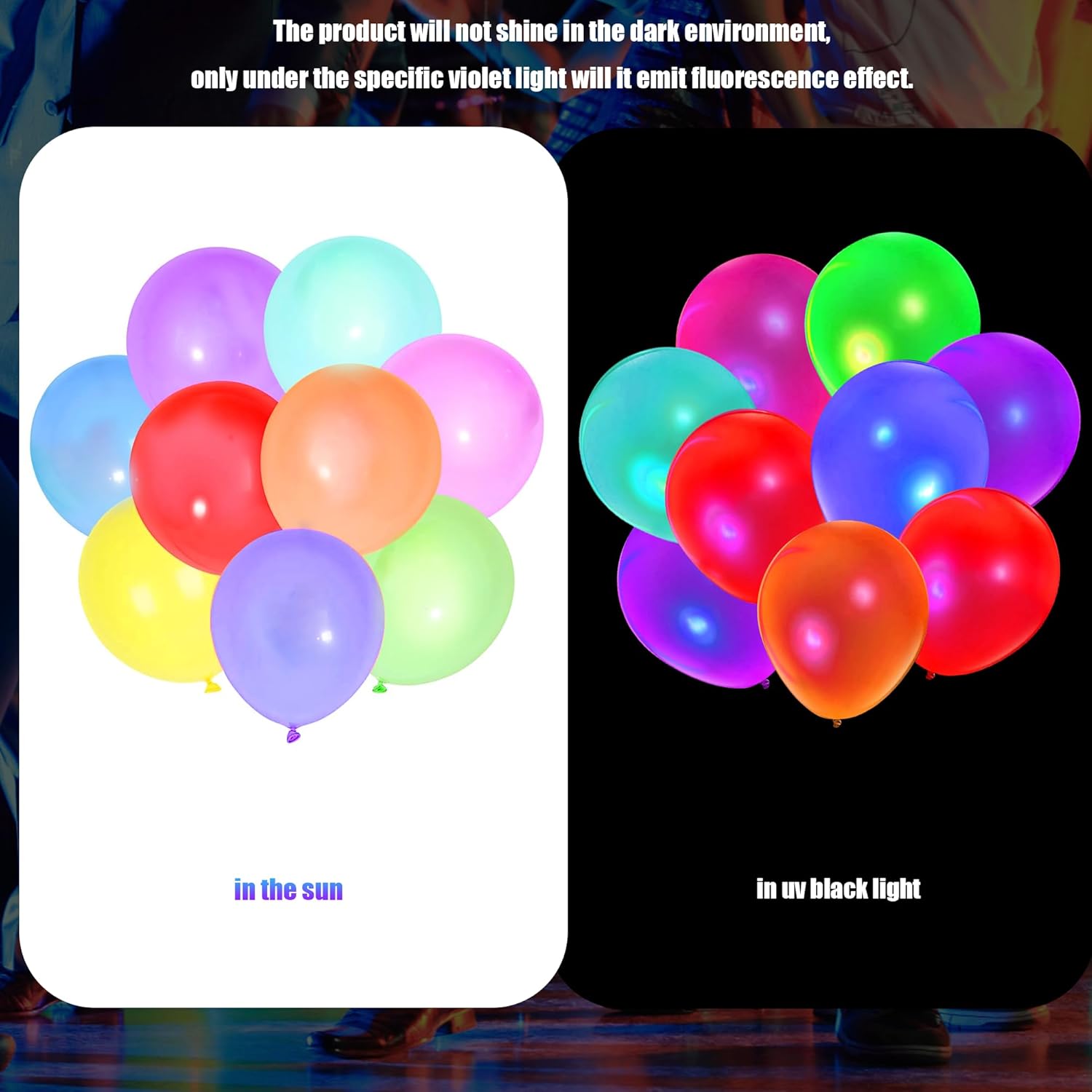 - 【Warm Tips】 Neon color balloons will not glow in the dark without UV-Black light response. Please do not inflate the balloon more than 90% to avoid sudden popping, and pay attention to avoid high temperature and sharp objects. If you have any questions, please feel free to let us know. We are glad to serve you and you will get a satisfactory solution within 24 hours