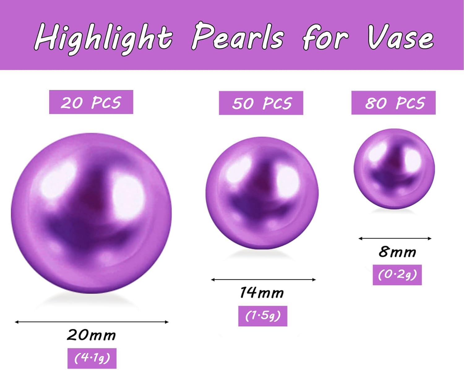 150Pcs Purple Polished No Hole Faux Pearl Beads for Vase Filling Decorations, Plastic Pearls Vase Fillers, Table Scatters, Wedding Centerpiece, Home Decor, 8/14/20 mm