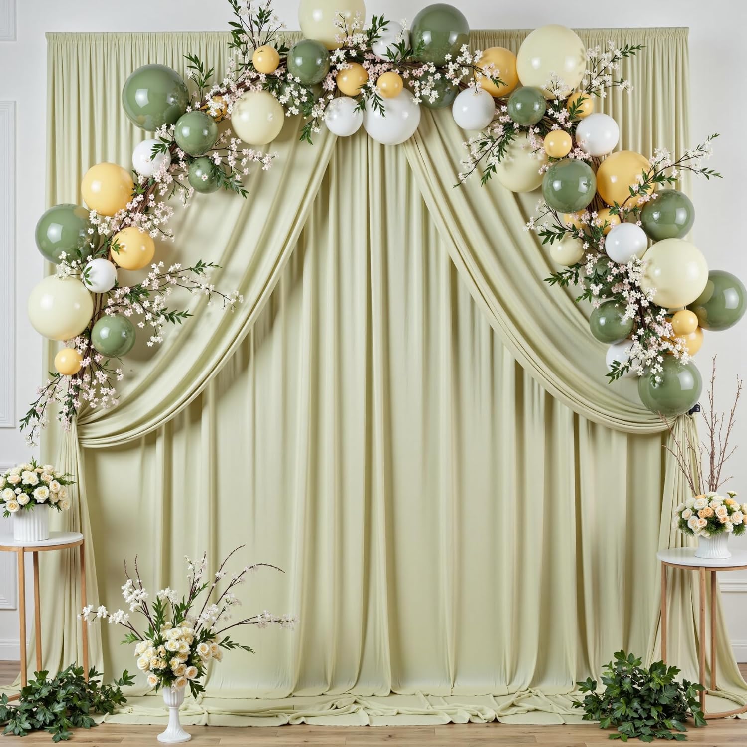 - Light Green Wrinkle Free Fabric Drapes: Our silky spandex backdrop curtains drapes are crafted from 100% quality fabric. The photography drapes are winkle-free, drapes nicely,ironable,durable and soft touch feeling. cortinas para fiestas decoracion.
