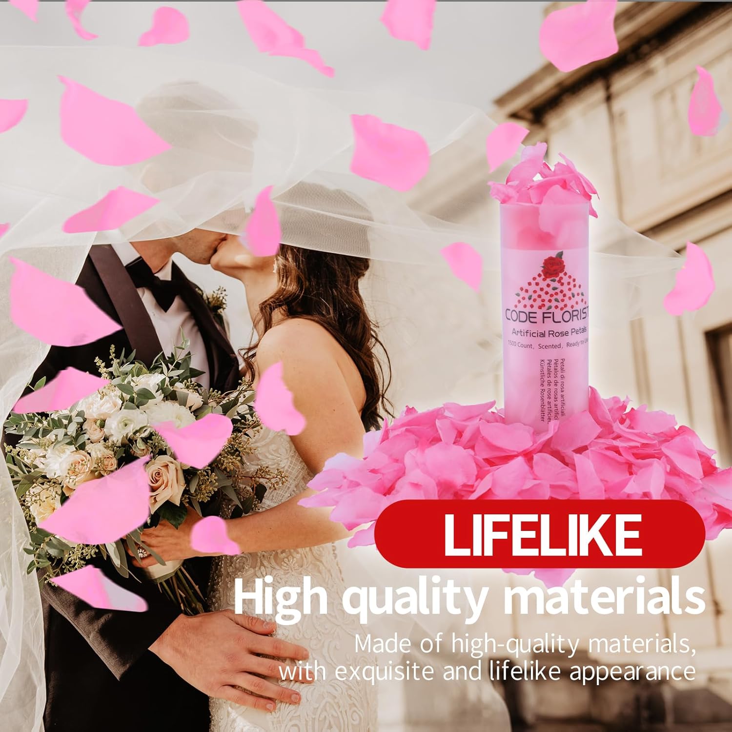CODE FLORIST 1500 PCS Silk Rose Petals for Valentine's Day,Fake Rose Petals for Romantic Night,Wedding,Proposal Anniversary Flower Decorations(Separated,Scented,Light Pink&Hot Pink)