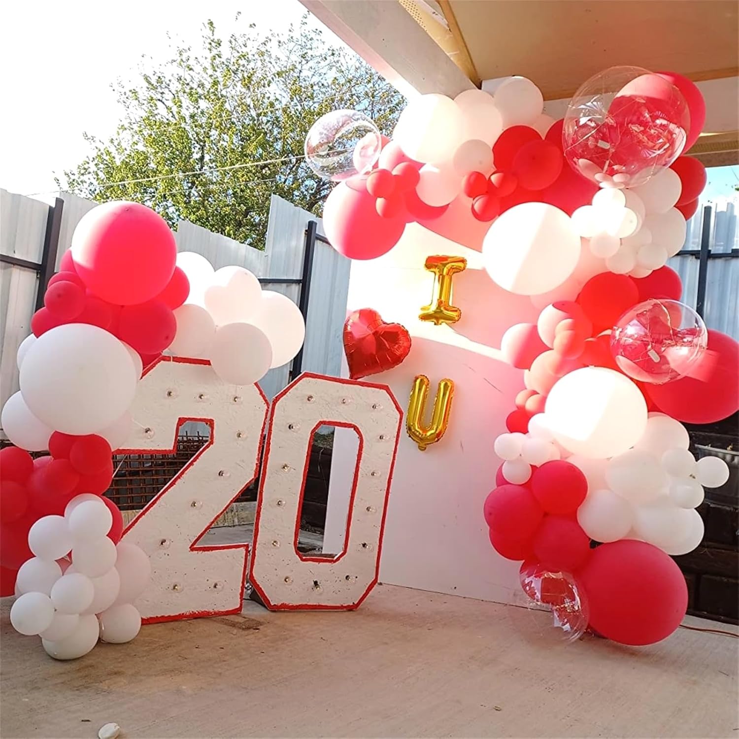 - š Enjoy Party Time - Our red white latex balloons are suitable for many indoor events and outdoor occasions and can add atmosphere to your party. It is the perfect decoration for happy occasions or celebratory moments such as women girls birthday, baby shower, Valentine's Day, carnival party, wedding, bridal shower, christmas and other party decoration supplies. Makes your party attractive and romantic.