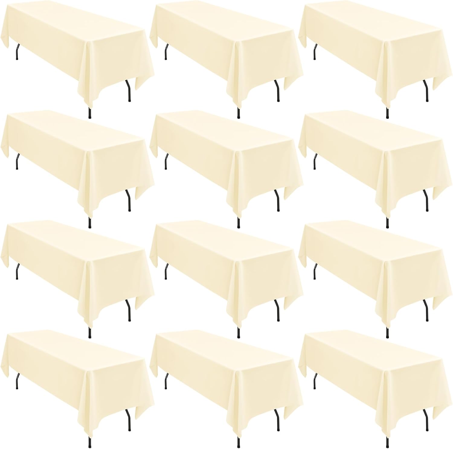 12 Pack 60 x 126 Inch Tablecloth, Beige Polyester Tablecloth for 8 Ft Rectangle Tables, Washable Fabric Table Cover for Wedding Party Dining Buffet Parties or Camping