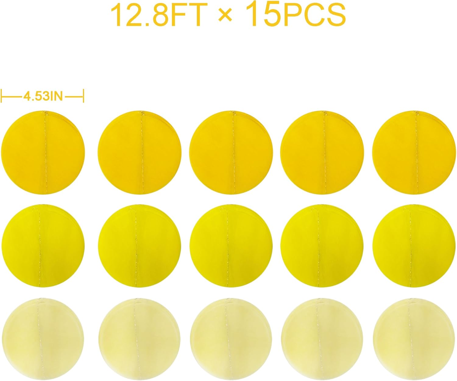 - 🟡PACKAGE CONTAINS- 15 packs of ombre yellow color circle dot party garland banner,each string is 12.8 feet/3.9 meters with 30 pcs polka dots, Total is 58.5 meters/192 feet.
