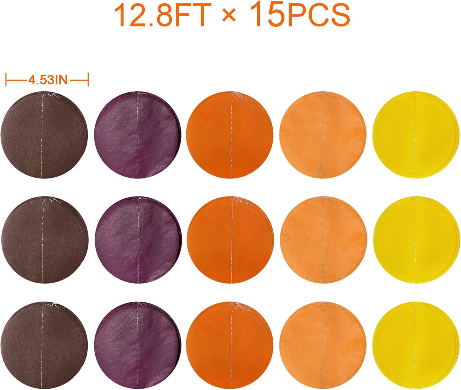 - 🟤ENVIRONMENTAL MATERIAL-Our orange brown maroon yellow big circle dot streamer garland are made of high quality tissue paper,carefully hand-made and machine-sewn together with thread.durable and reusable.Unroll & unwrap the tissue paper garland carefully. Due to delicate nature of thread, may tangle.