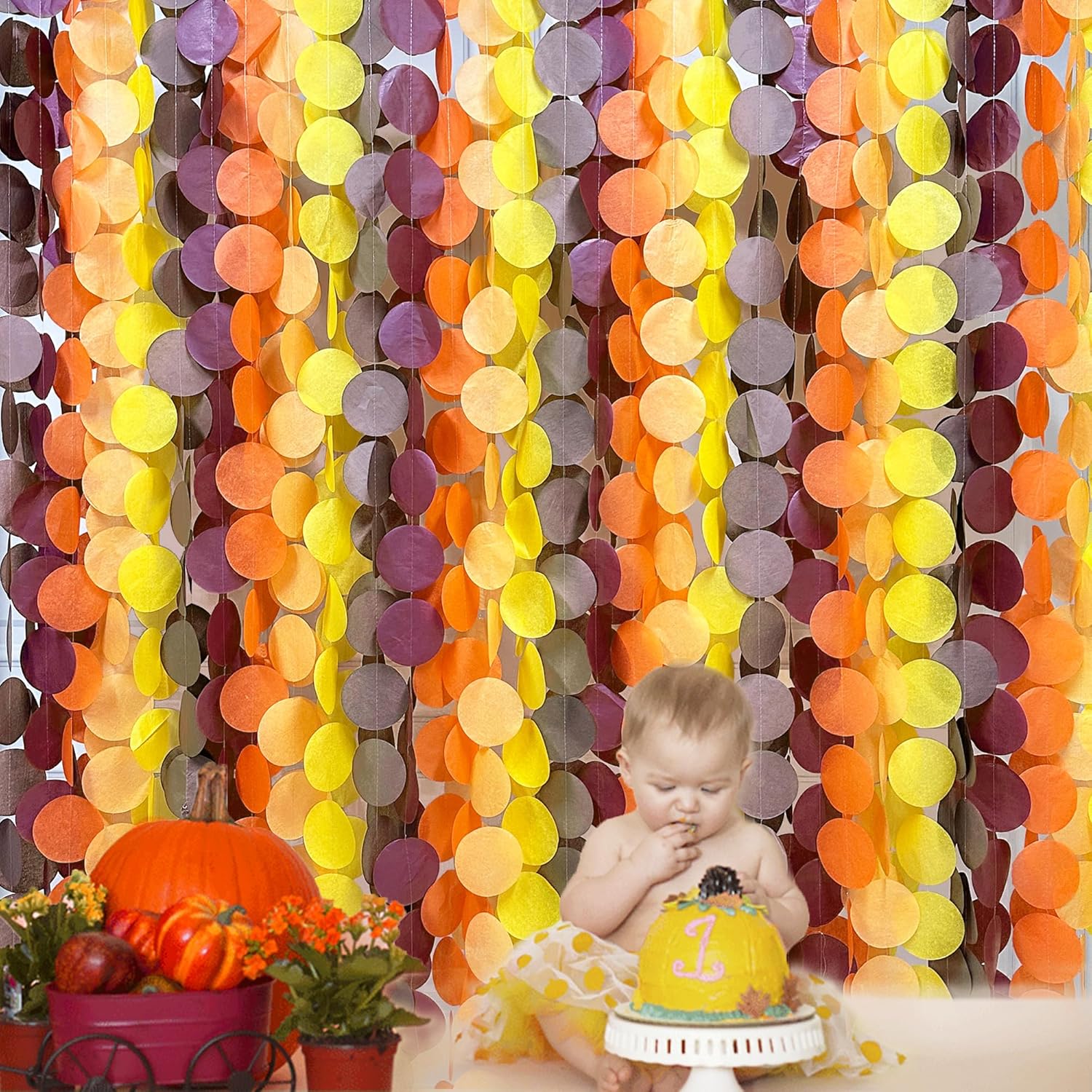 - 🟠PACKAGE CONTAINS- 15 packs of fall color circle dot party garland banner,each string is 12.8 feet/3.9 meters with 30 pcs polka dots, Total is 58.5 meters/192 feet.