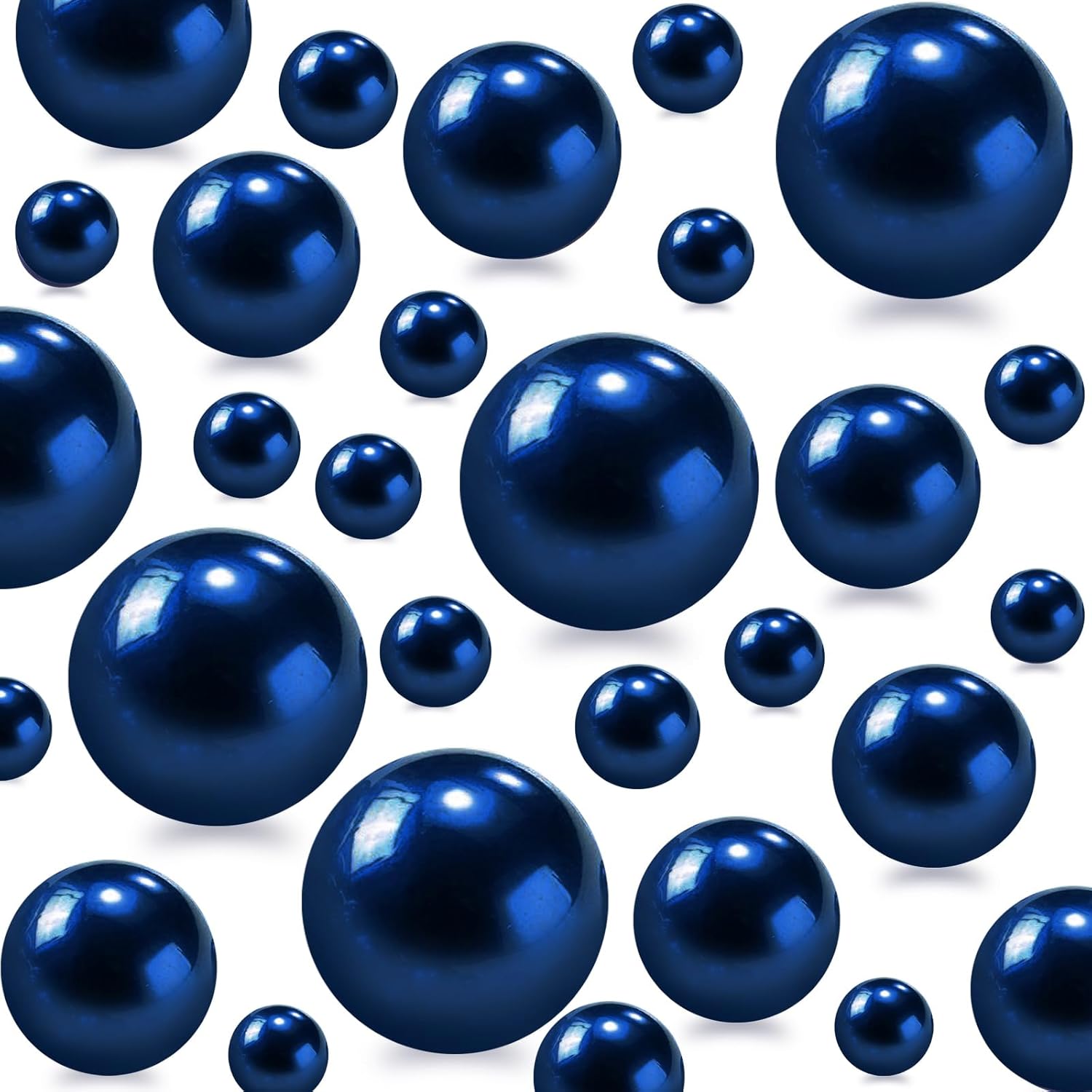 150Pcs Navy Blue Polished No Hole Faux Pearl Beads for Vase Filling Decorations, Plastic Pearls Vase Fillers, Table Scatters, Wedding Centerpiece, Home Decor, 8/14/20 mm
