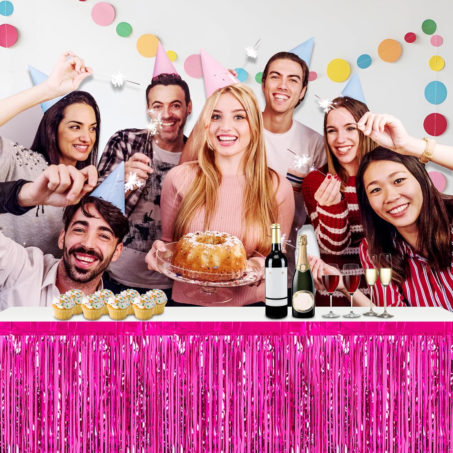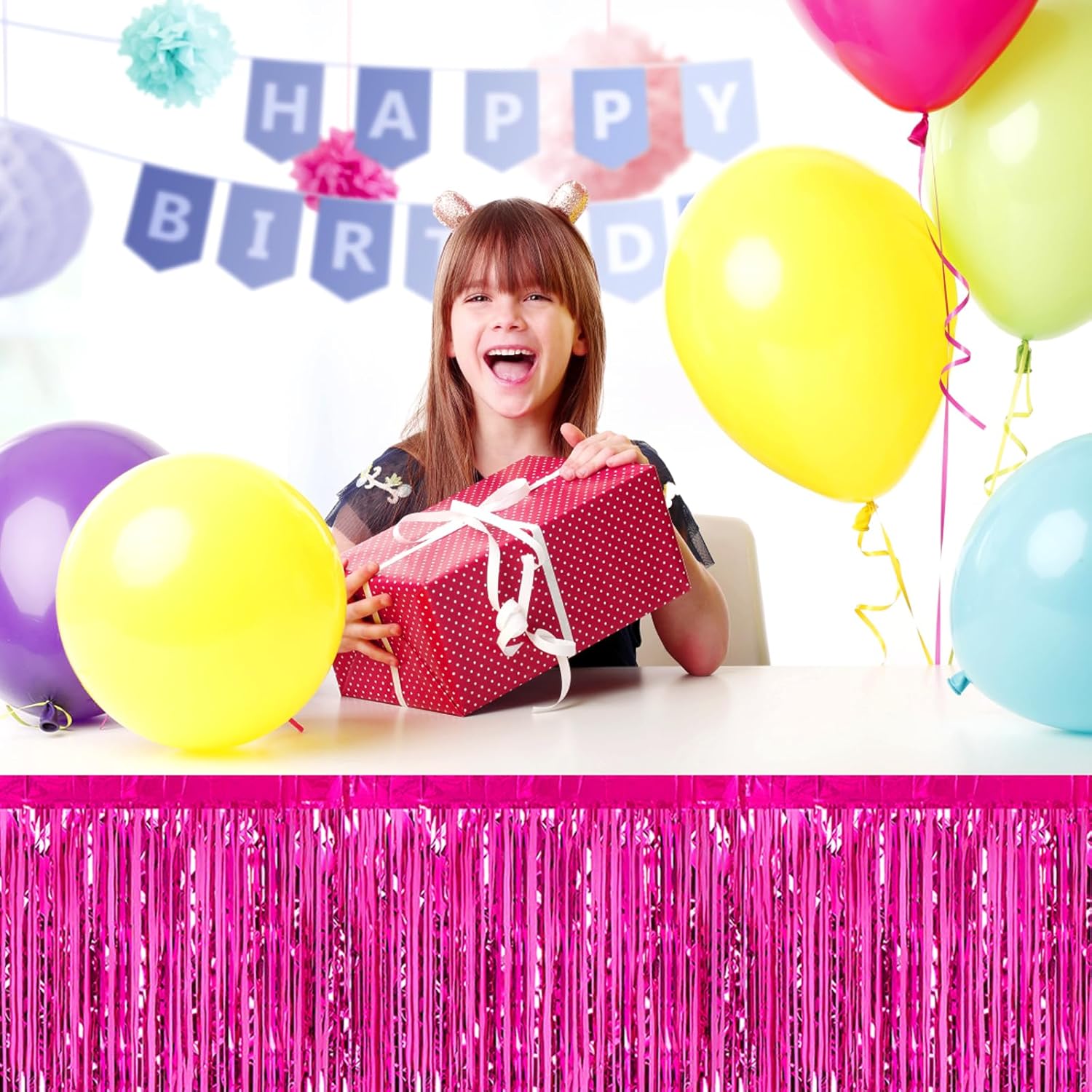 - Specifications and dimensions:3 Packs metallic foil tassel table skirt 29x108 inches, which is enough to decorate your party, provide you with excellent Convenient installation: the table skirt is equipped with self-adhesive tape. Just tear off the tape and paste it. The installation is convenient and quick. It can be pasted on the edge of your round table and square table. It can be easily cut into any siz.