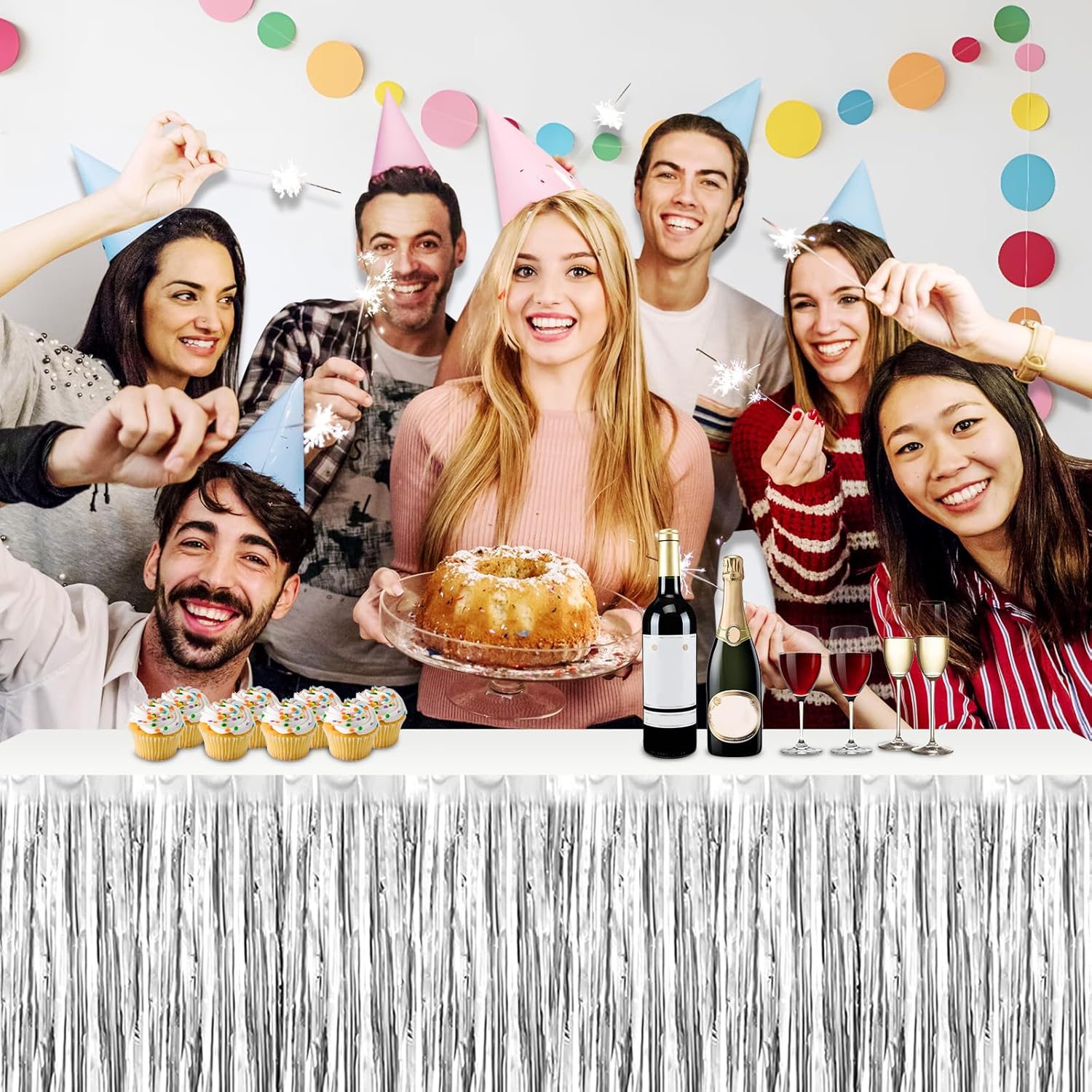 3 Pack 29x108 Inch Silver Foil Fringe Table Skirts Metallic Banner for Tinsel Streamer Garland Backdrop for Parade Floats Wedding Thanksgiving Birthday Christmas Halloween Party Decoration