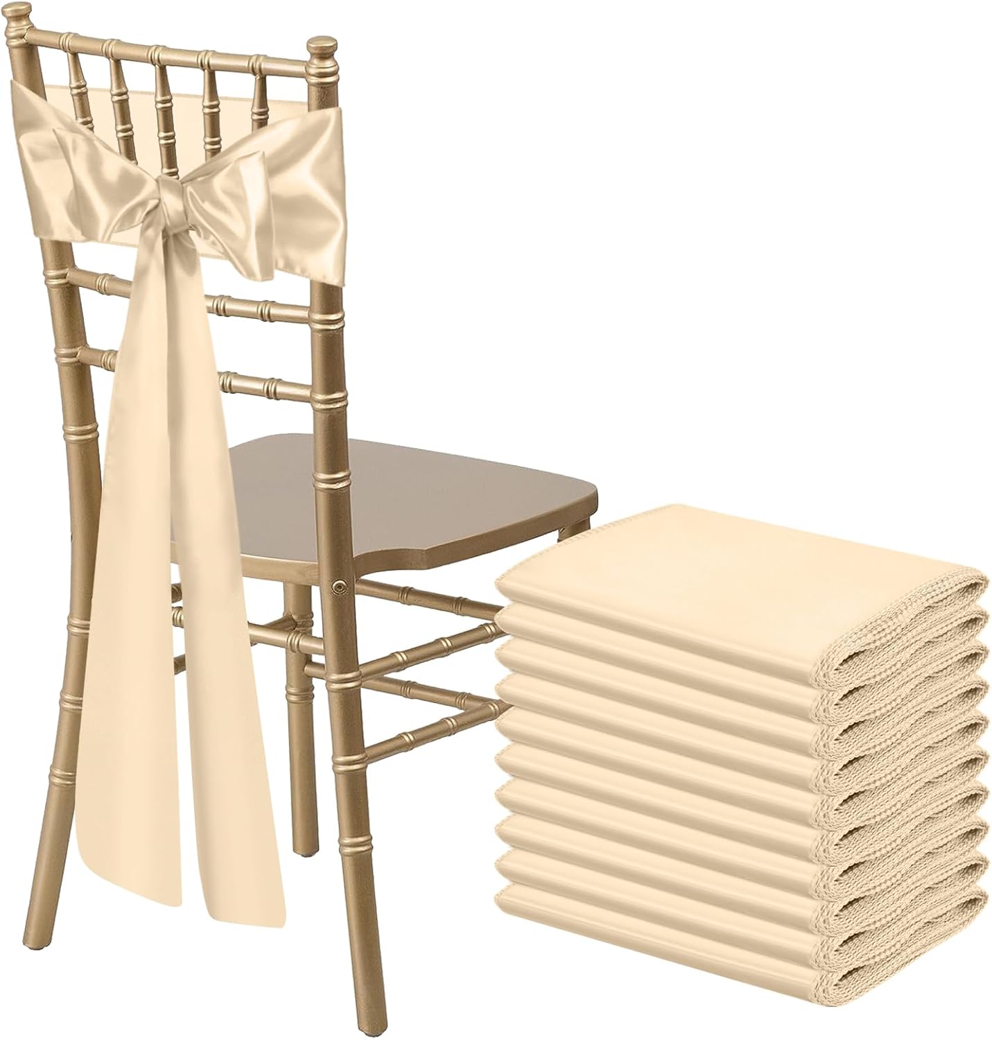 10 PCS Satin Chair Sashes Bows Universal Chair Ribbon Ties Back Sash for Wedding Party Reception Events Banquets Hotel Event Chair Cover Decoration (Champagne 7x108 inch)