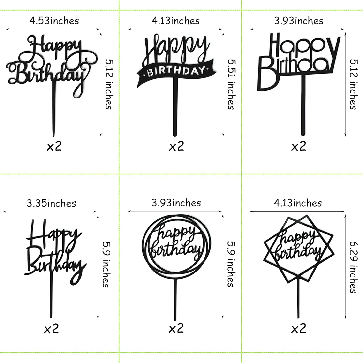 - Size: The Happy birthday cake toppersβ height is approx.5.1 - 6.3 inches, the width is approx. 3.4 - 4.5 inches. Ideal for 6-10β cakes.