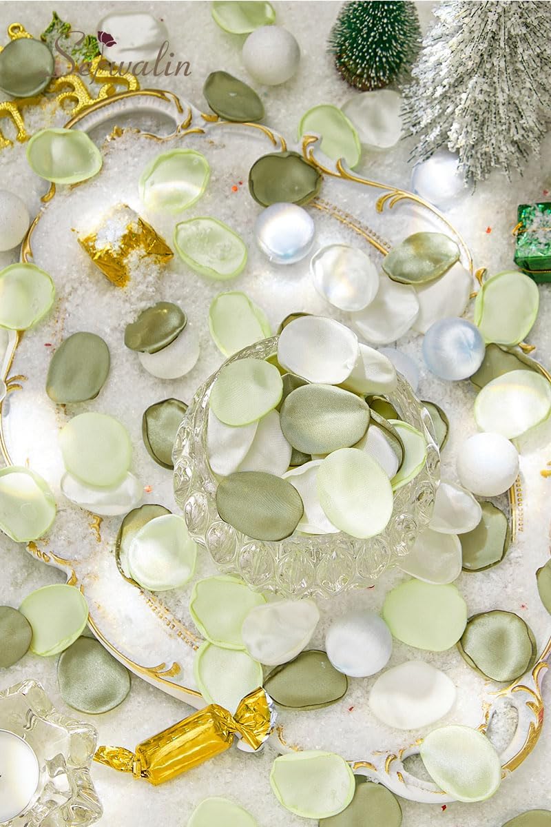 Serwalin 300Pcs Silk Rose Petals Artificial Flower Petals for Weddings Bean Green Fake Rose Petals Flower Girl Aisle Romantic Decor Dinner Table Centerpieces Proposal (3 Color Mixes)