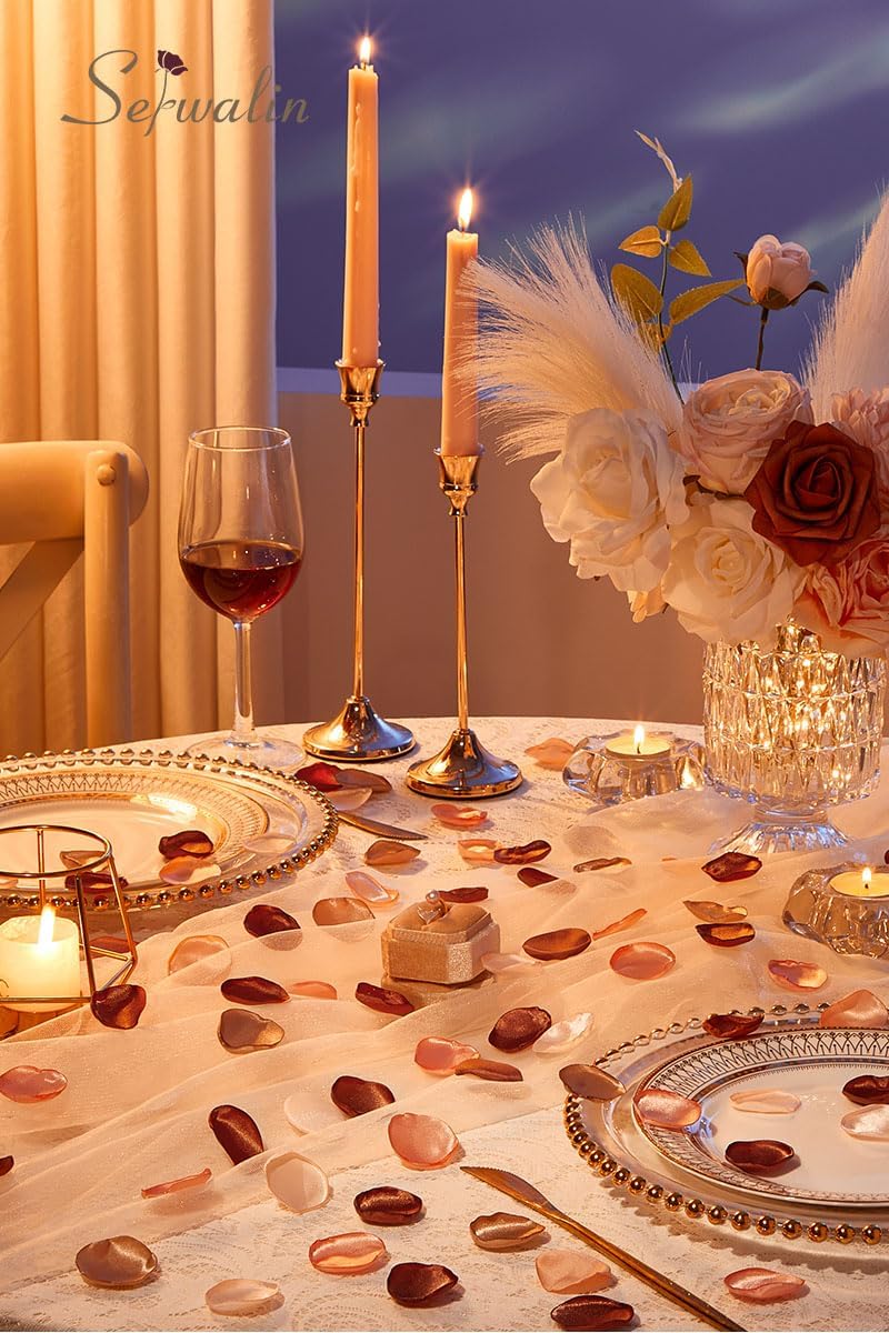 Serwalin 500Pcs Silk Rose Petals Artificial Flower Petals for Weddings Fake Rose Brown Petals Proposal for Wedding Aisle Runner Bridal Shower (4 Color Mixes)