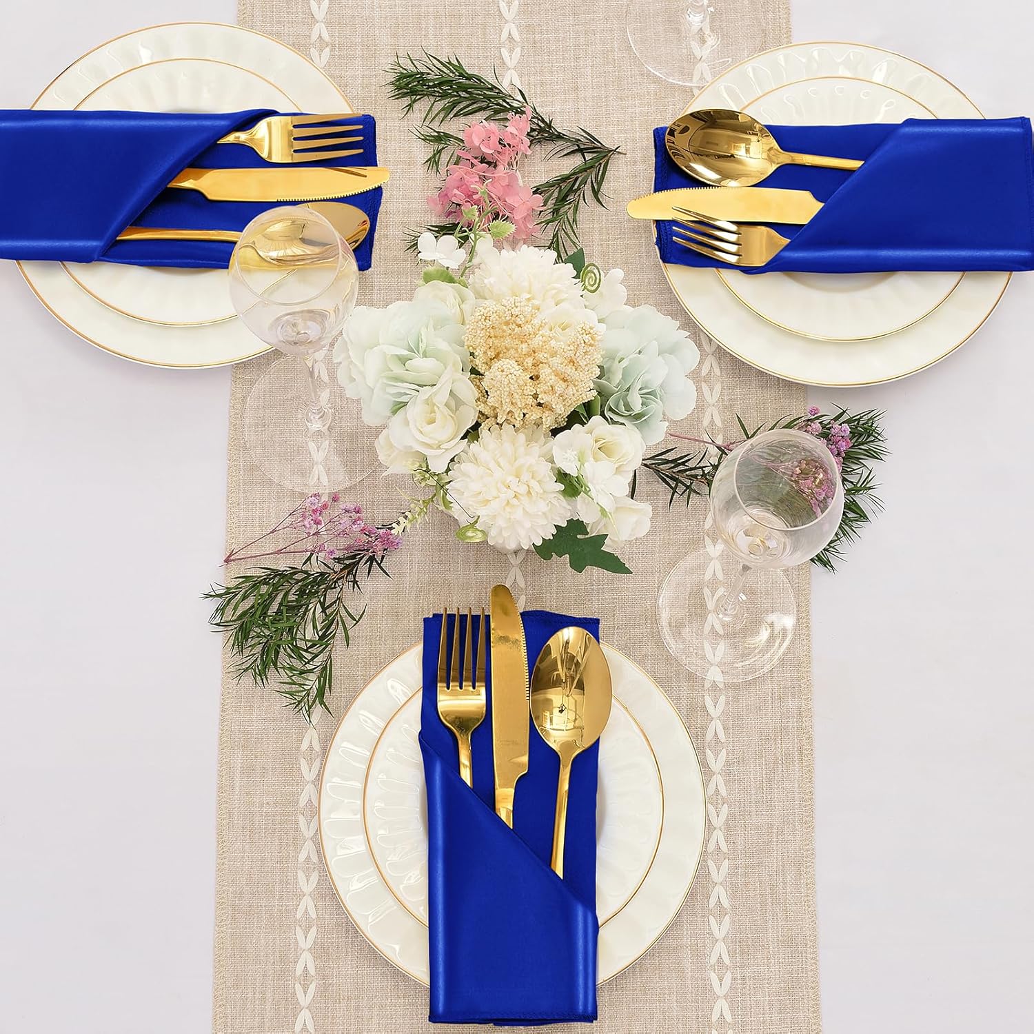 12 Pieces Royal Blue Satin Napkins, 17" x 17" Square Table Napkins, Silky Soft Smooth Washable Napkins for Restaurant, Weddings, Dinner, Party Decoration