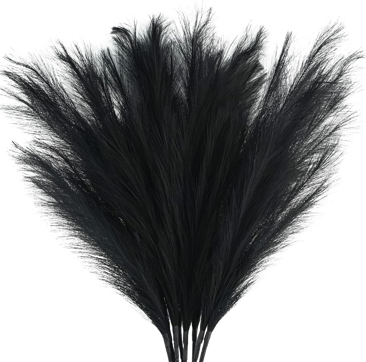- Black Pampas Grass Decor: You will get a pack of 8pcs artificial pampas grass, each stem 35β, and the heads of each stem is designed you can fluff them up for a fuller look, create a chic minimalist, or Bohemian modern display to complement your existing home arrangement