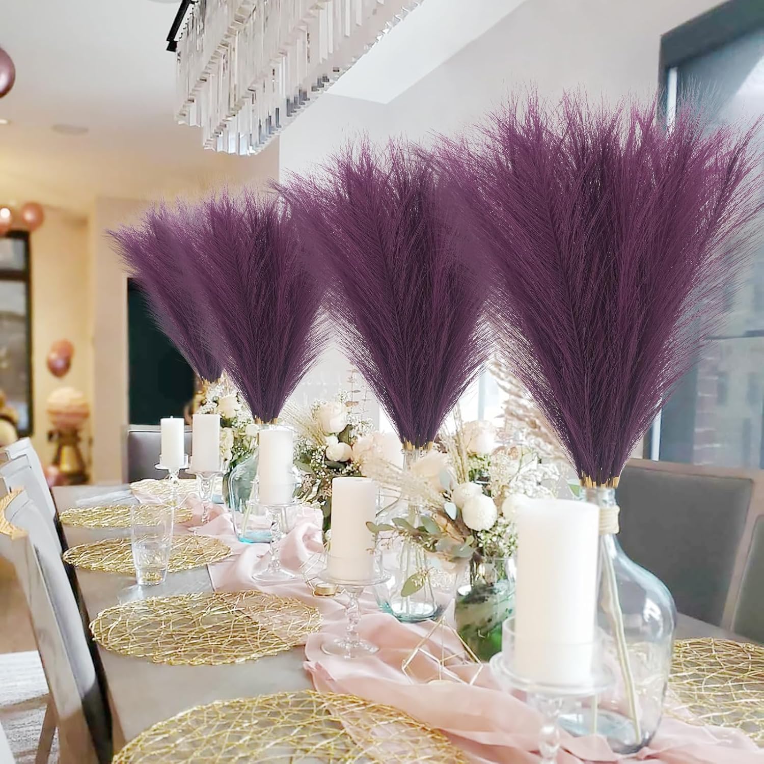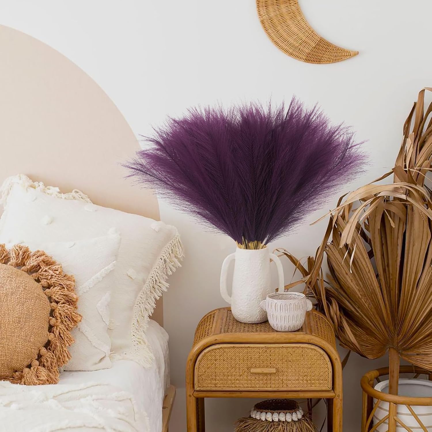 - Purple Pampas Grass Decor: You will get a pack of 50pcs artificial pampass grass, each stem 21.6β, and the heads of each stem is designed you can fluff them up for a fuller look, create a chic minimalist, or Bohemian modern display to complement your existing home arrangement