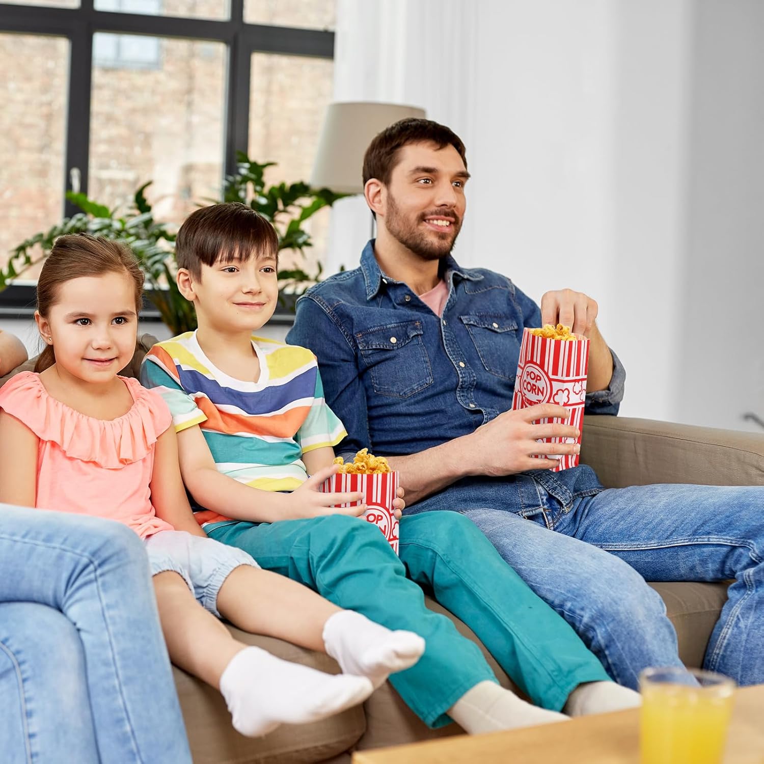 - Vintage and Resonant Appearances: the individual popcorn containers adopt classic red and white striped patterns and delicious popcorn patterns, which can arouse your childhood memories at first sight, creating a vintage and nostalgic atmosphere