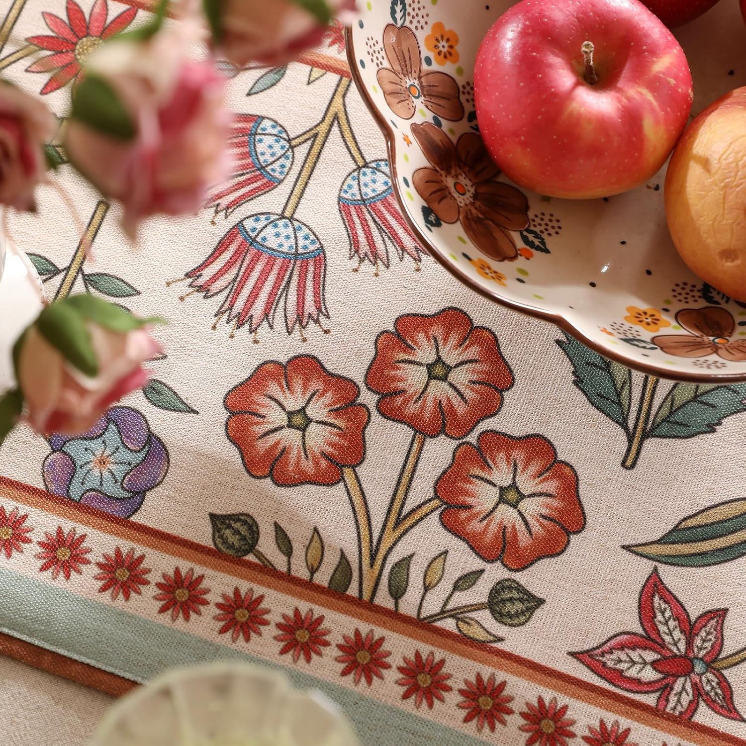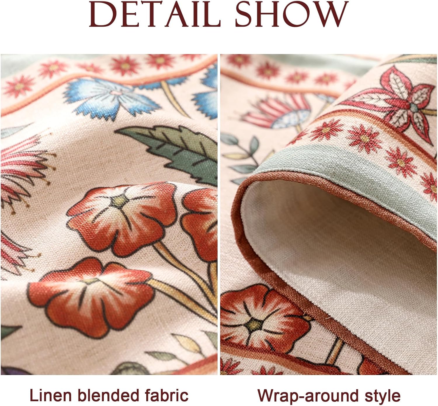 Decorative Linen Table Runner 87 Inches Long,Green Floral Rustic Farmhouse Runner for Table Decor Tabletop Table Runners for Kitchen,Dining,Party,Home,Christmas,12"*87"