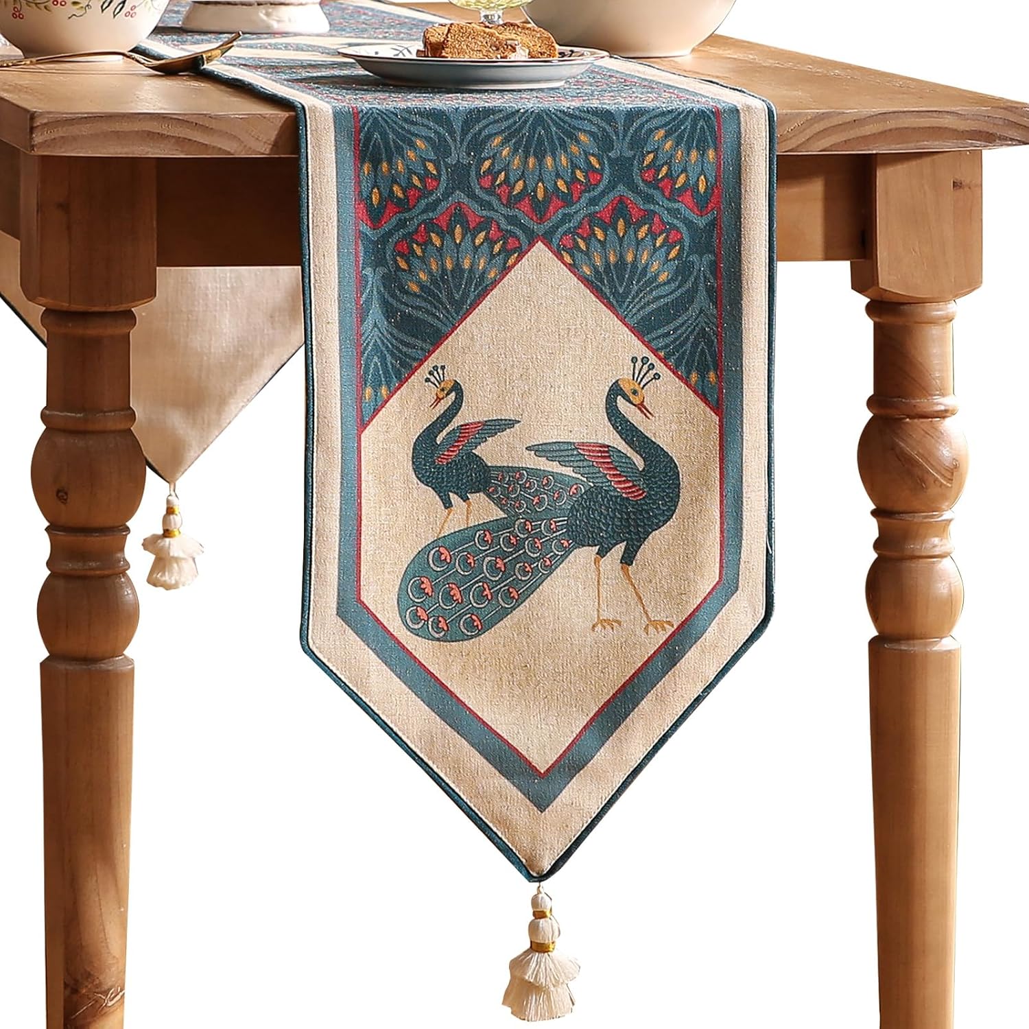 Vintage Blue Peacock Table Runner for Coffee Table,Decorative Linen 71 Inches Long Table Runners,Decor Tabletop for Kitchen,Dining,Tea Party,Home,Christmas,12"*71"