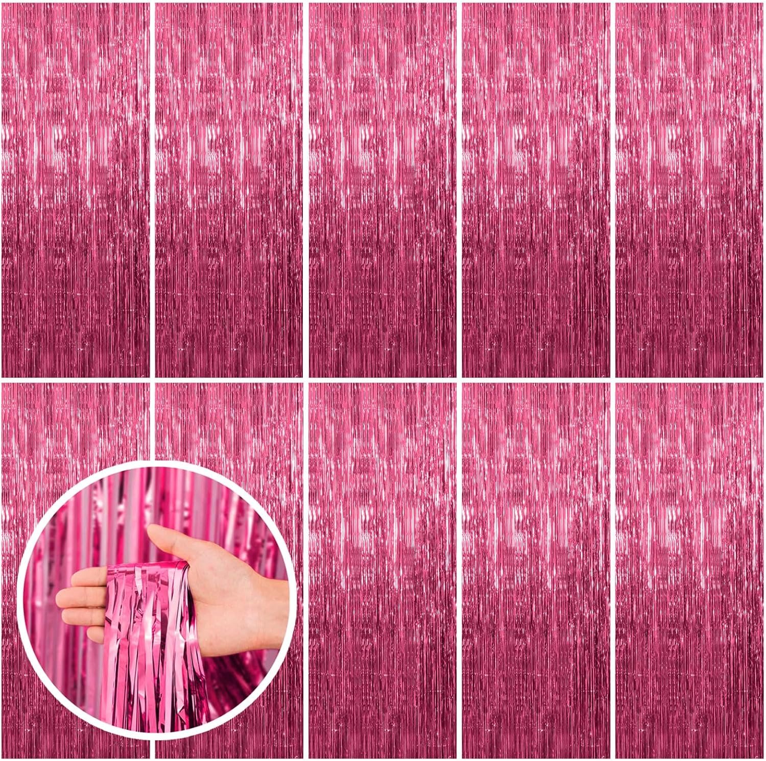 10 Pack Pink Backdrop Party Decorations Tinsel Curtain Party Backdrop Foil Fringe Birthday Decorations Photo Booth Streamer Backdrop Pink Theme Bachelorette Graduation Party Decorations