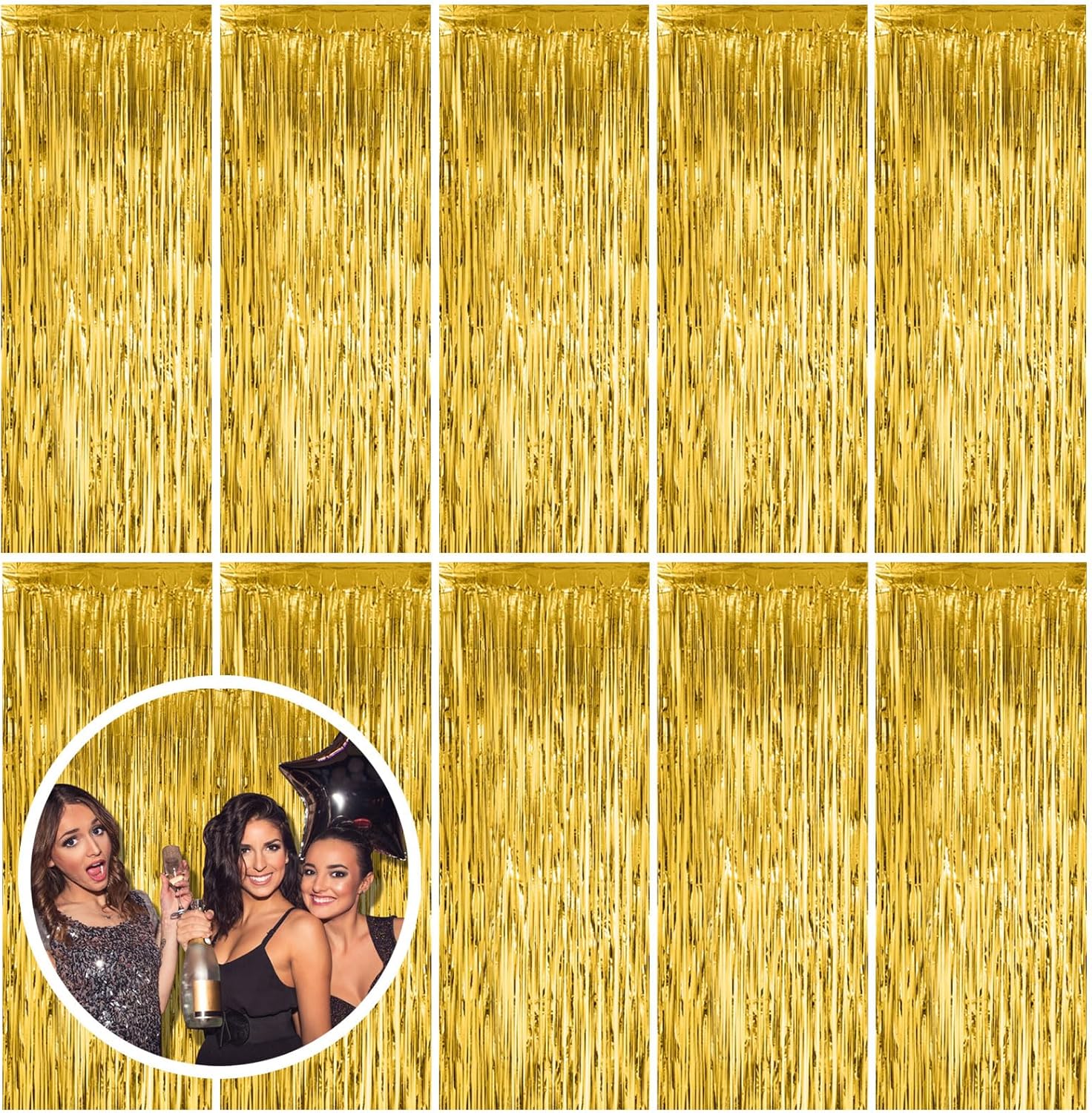 10 Pack Gold Fringe Curtain Backdrop Tinsel Streamers Birthday Party Decorations Christmas Photo Booth Backdrop Halloween New Year Graduation Baby Shower Theme Party Decorations