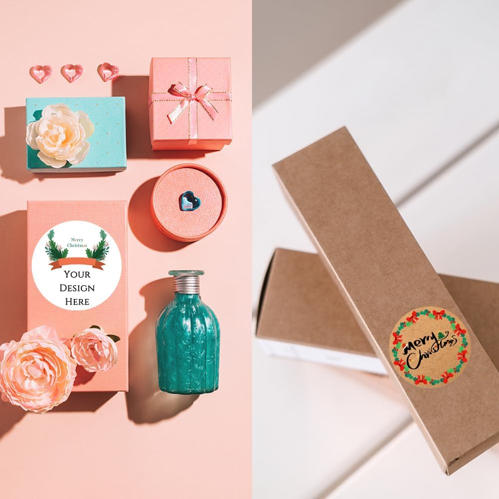 100-1000pcs Custom Stickers Merry Christmas Stickers Personalized Labels Adhesive Xmas Decorative Envelope Seals Stickers for Cards Gift Boxes (Round Kraft -10)