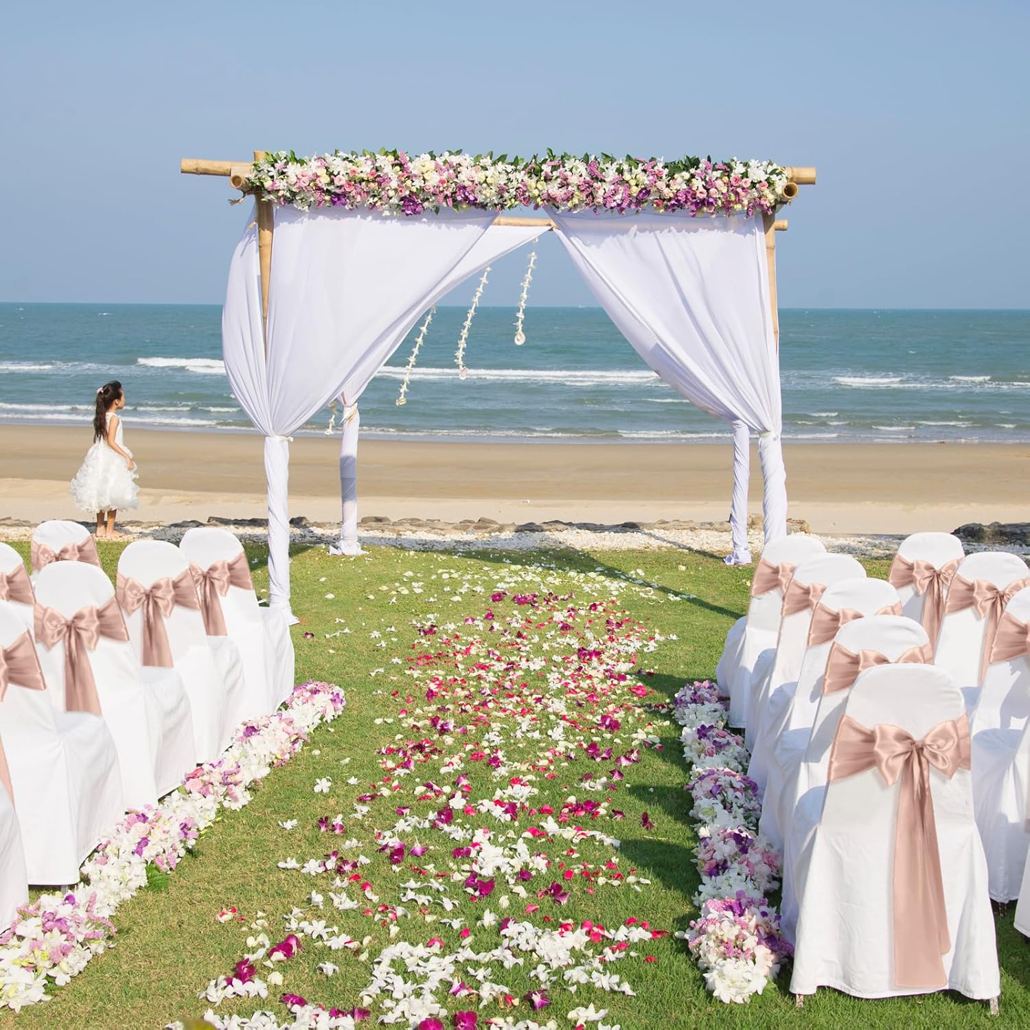 - Size & Package:You will get 10 pieces blush pink satin chair sashes, and the size is about 108" x7" or 275cm(l) x 17cm(w). These chair ties adopt flating packing, please to tie the bow by yourself. Each package includes chair sashes only, no chair covers