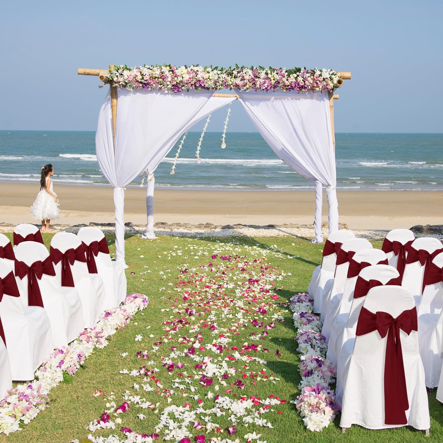 - Size & Package:You will get 10 pieces burgundy satin chair sashes, and the size is about 108" x7" or 275cm(l) x 17cm(w). These chair ties adopt flating packing, please to tie the bow by yourself. Each package includes chair sashes only, no chair covers
