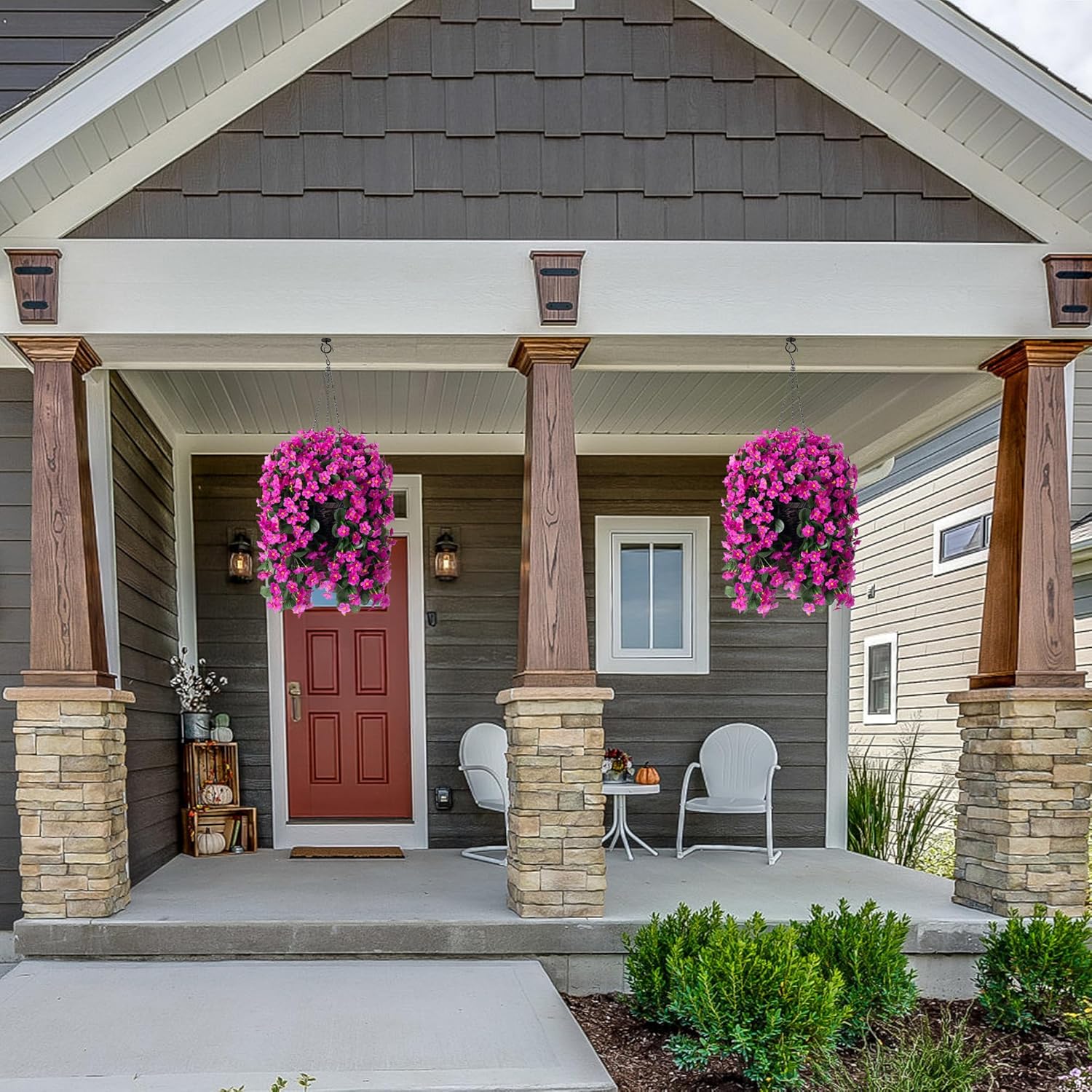 - GOOD QUALITY: The hanging basket and artificial flowers were made of good quality material that donโt require maintenance after assembly. Itโs UV resistance and wonโt fade, sturdy enough for any weather. No watering needs