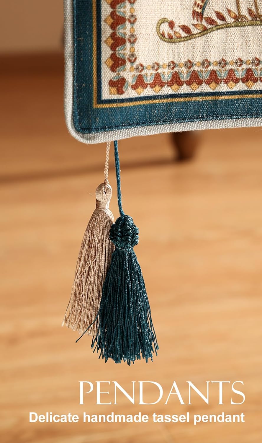 - Care Instructions: Table runners with tassels, pendants, or other decorations should only be washed by hand and placed in a cool, well-ventilated area to dry after washing. For other models without decorations, they can be washed in a gentle cycle in the washing machine or by hand, tumble dried on low heat, and ironed if needed. Please avoid using bleach.
