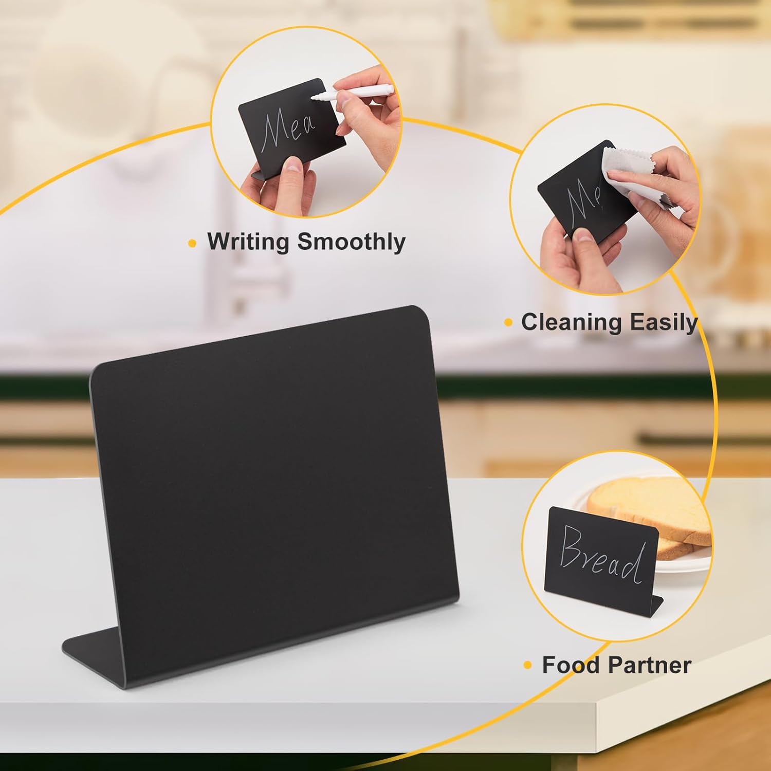 - Various Application: Small plastic blackboard signs are for parties, buffets, birthdays, weddings to as table numbers, reservation signs, buffet display, place cards, name tag, price tag, warning and welcome signs, plant displays, buffet display