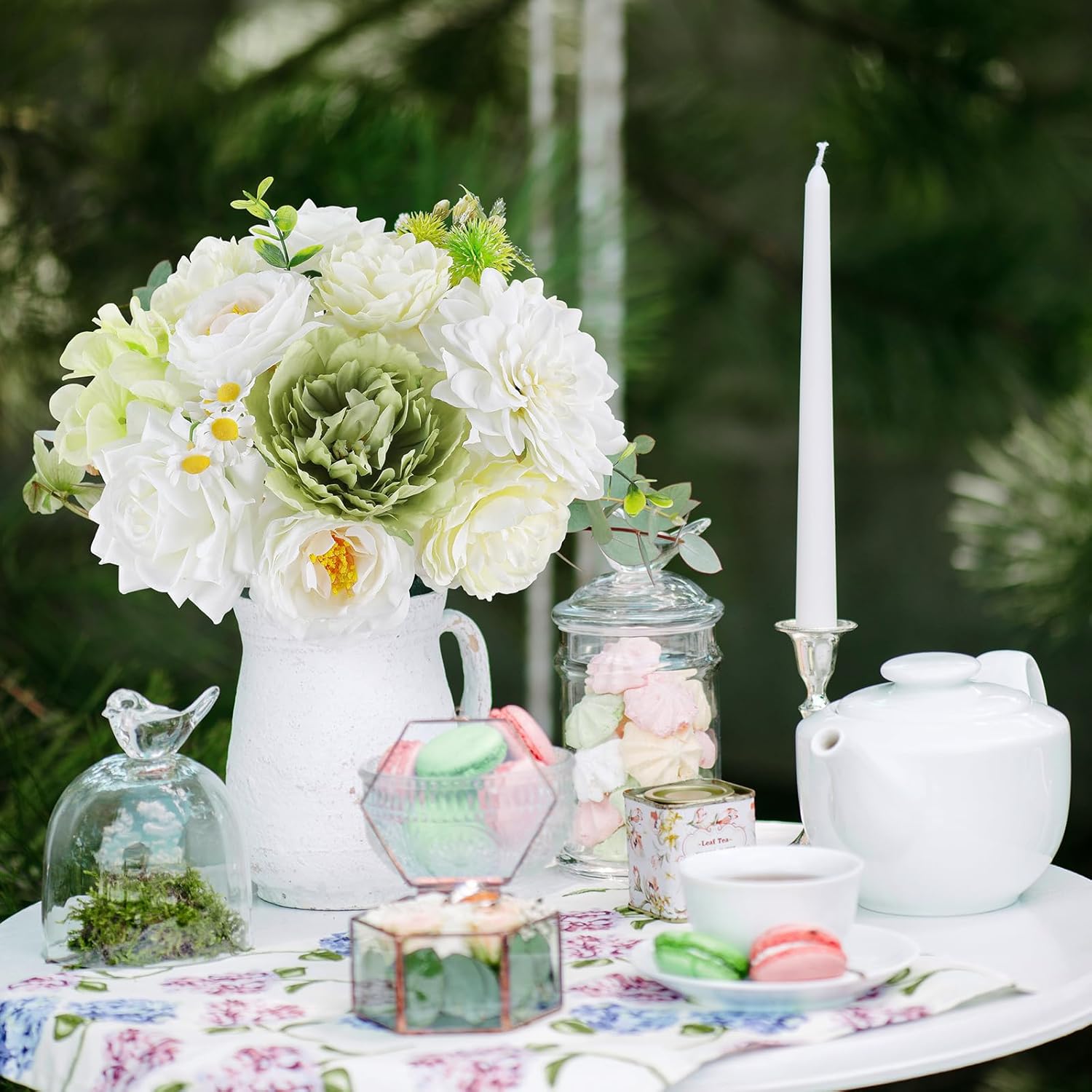 AmyHomie Green White Artificial Flowers Combo Silk Mix Peony Rose Fake Flowers w/Stem for DIY Wedding Bouquets Centerpieces Arrangements Table Fall Decor Party Bridal Baby Shower Home Decorations