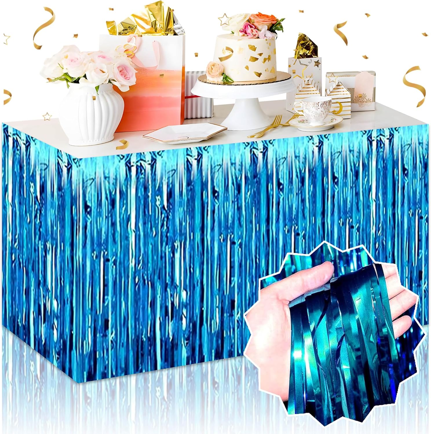 - Multi-Color Options: The foil fringe table skirts streamers is made of metallic foil, shiny and bright. This foil fringe table skirts streamers provide a variety of color options, to meet different party needs. Tinsel foil fringe table skirts streamers would make your party more impressive