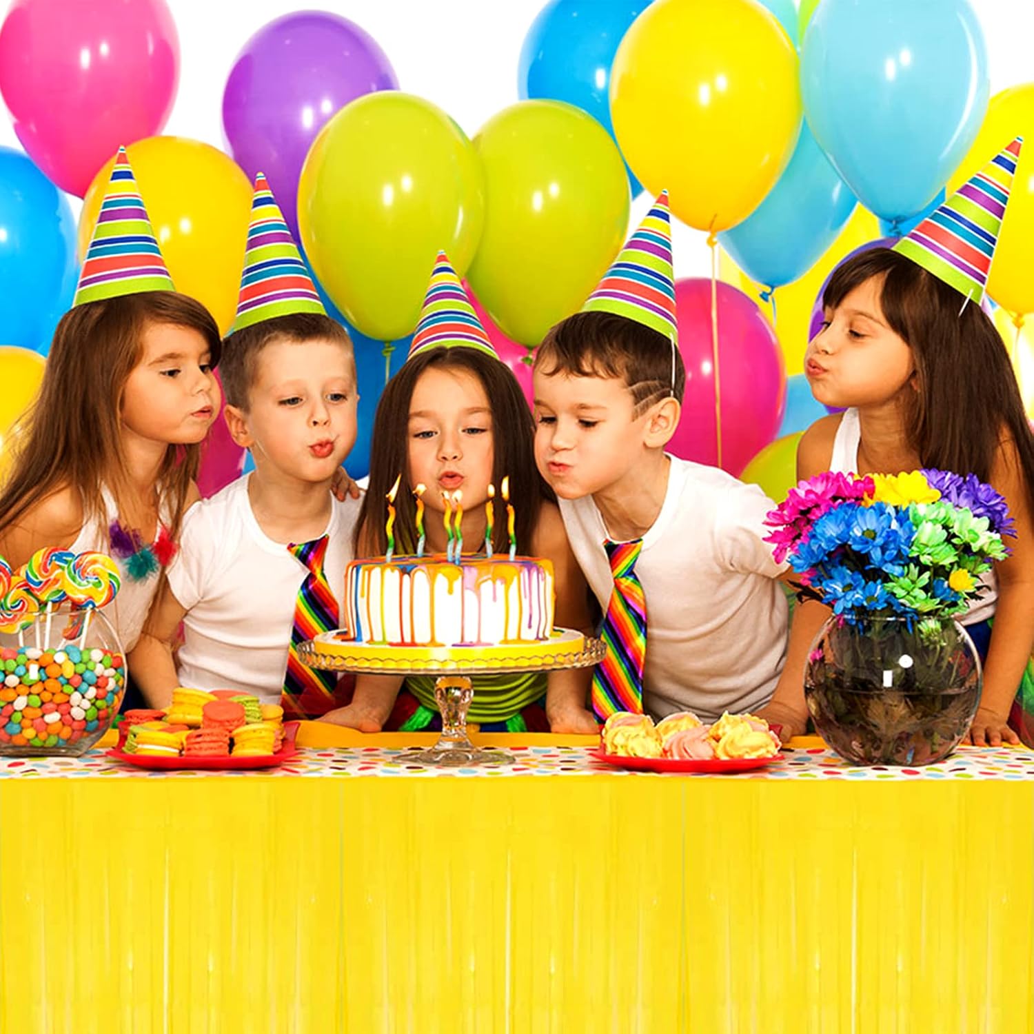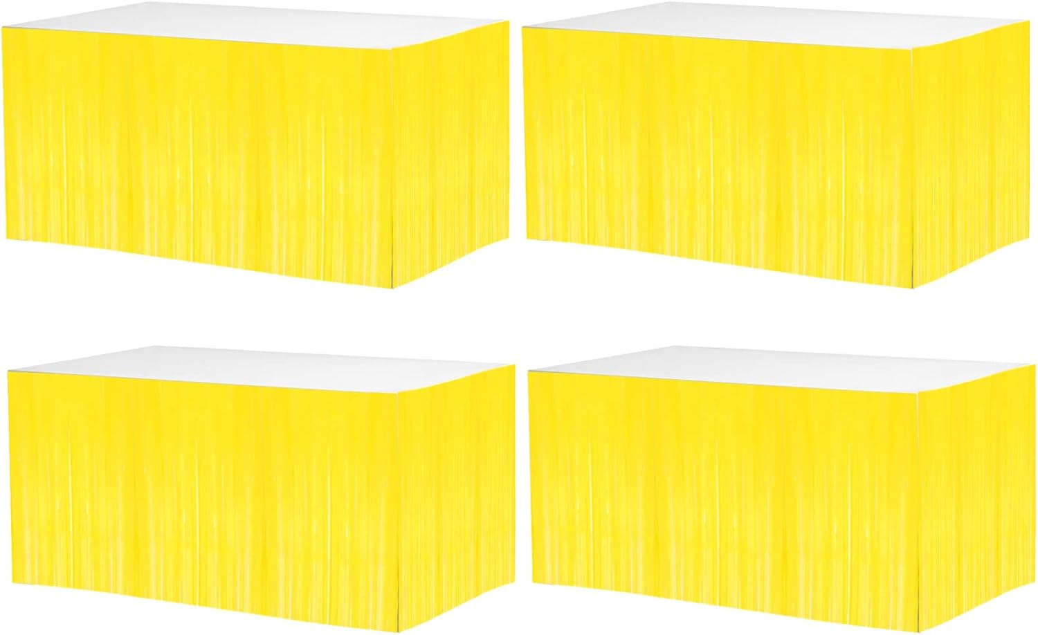 4 Pack 29x108 Inch Metallic Foil Fringe Tinsel Table Skirts for Rectangle Tables Streamer Backdrop for Wedding, Birthday, Parade Floats, Christmas, Halloween Party Decoration(New Yellow)