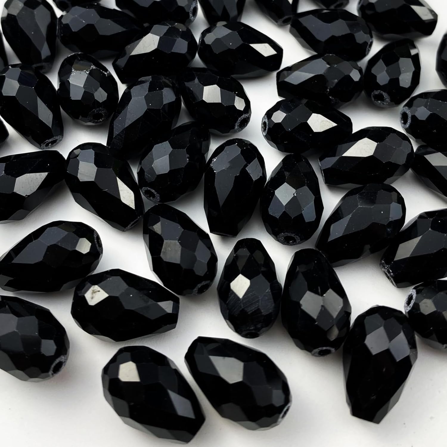 100pcs 8x12mm Teardrop Crystal Glass Beads Vertical Hole Faceted Glass Teardrop Spacer Beads for Bracelets Necklace Earring DIY Jewelry Making Craft(Black)