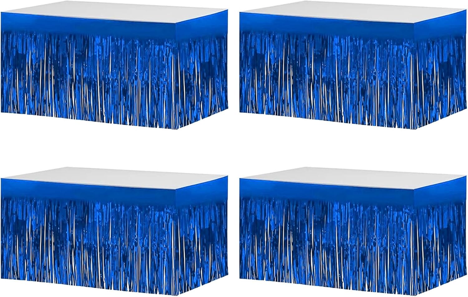 4 Pack Metallic Foil Fringe Tinsel Table Skirts,29x108 Inch Party Disposable Table Skirt Banner for Hotel Banquet Parade Floats Mardi Gras Holiday Birthday Wedding New Year Party Decoration(Blue)