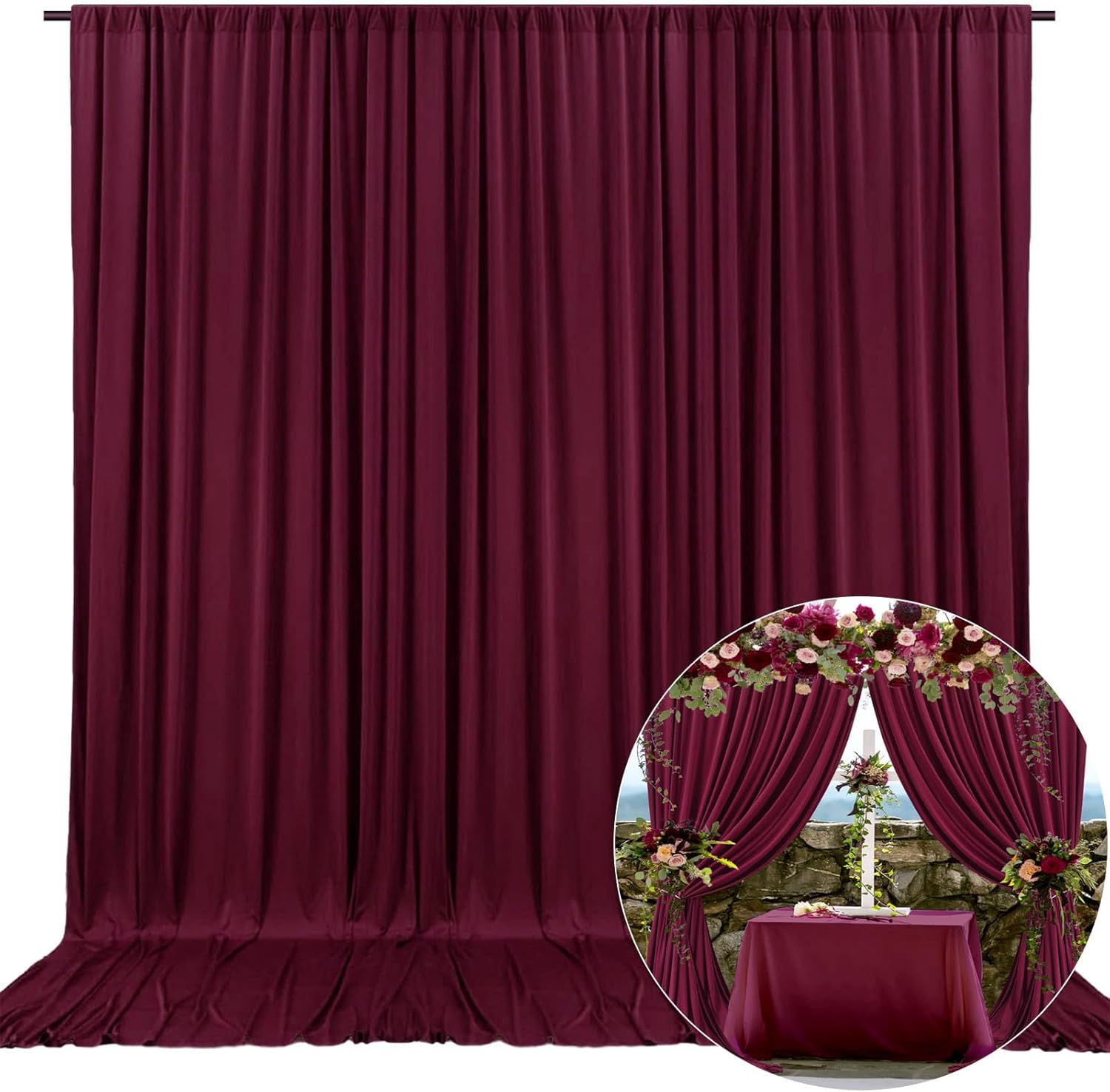 10 x 10 Feet Burgundy Backdrop Curtain for Partie, Background Curtains for Photoshoot, Birthday, Wedding, Halloween, Thanksgiving, Christmas Day, New Year Party Decorations 5Ft x 10Ft, 2 Panels