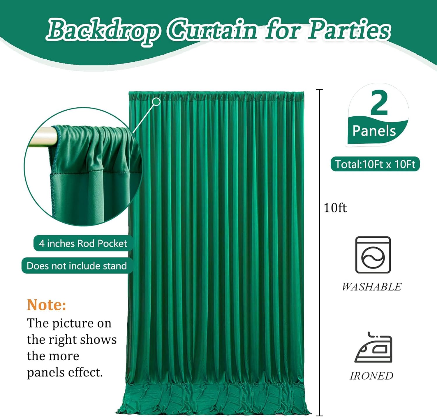 10 x 10 Feet Green Backdrop Curtain for Partie, Background Curtains for Photoshoot, Birthday, Wedding, Halloween, Thanksgiving, Christmas Day, New Year Party Decorations 5Ft x 10Ft, 2 Panels