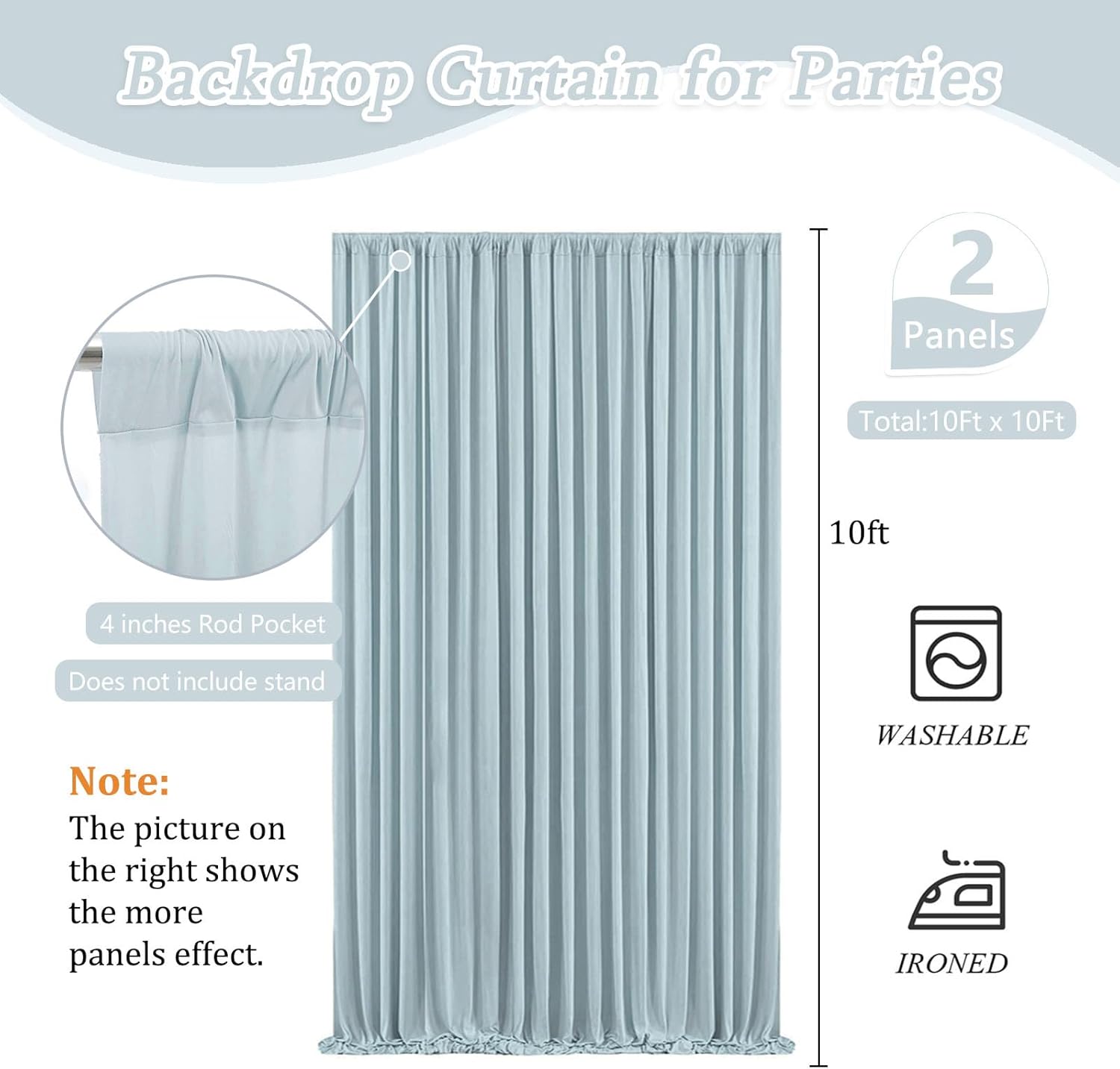 10 x 10 Feet Blueish Gray Backdrop Curtain for Partie, Background Curtains for Photoshoot, Birthday, Wedding, Halloween, Thanksgiving, Christmas Day, New Year Party Decorations 5Ft x 10Ft, 2 Panels