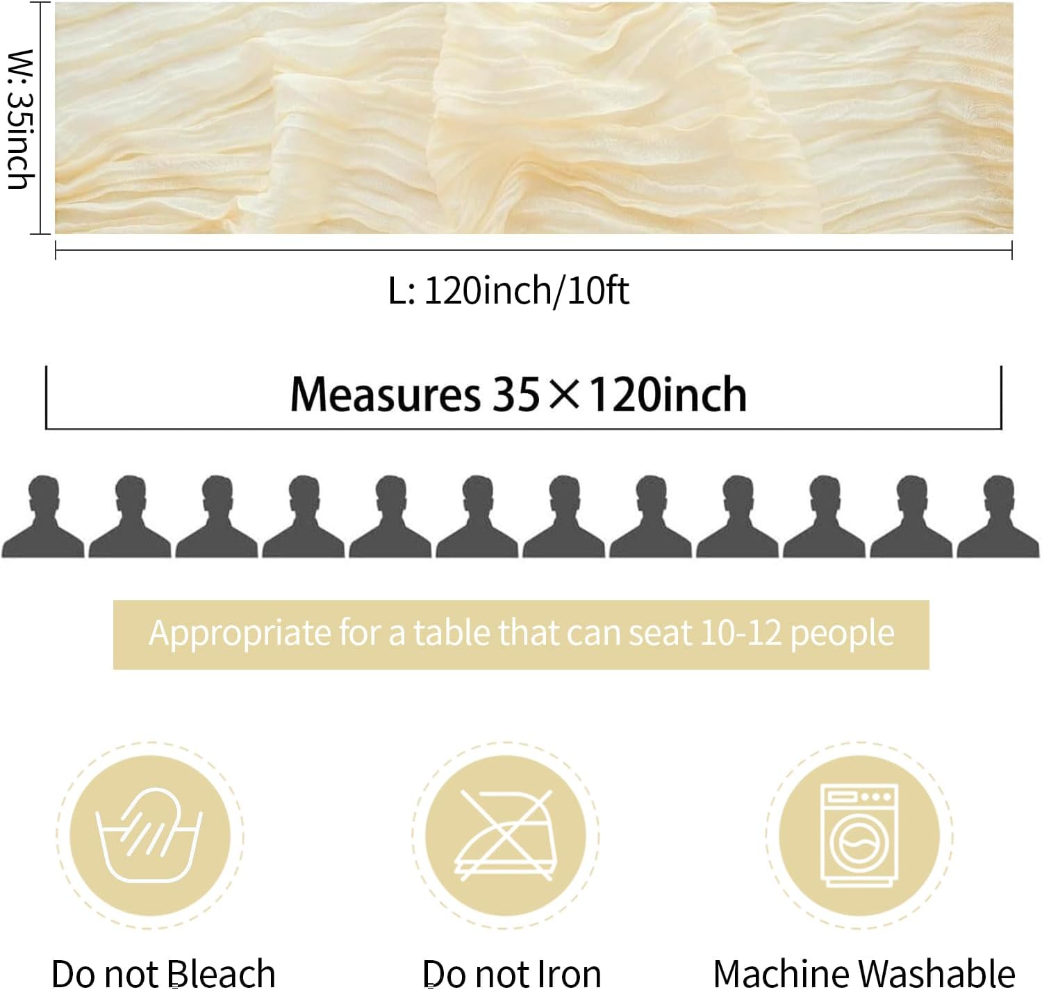 - 🌟【Care Instructions】Our cream colored table runners are recommended for hand wash in cold water with mild detergent, or machine wash in the gentle cycle with a laundry bag; In order to maintain wrinkled texture, please do not iron or use hot water, lay flat or hang dry, which are better for keeping these cheesecloth table runners for a long time use. Please kindly noted that there might be color variation due to screen resolution and limitations in photography.
