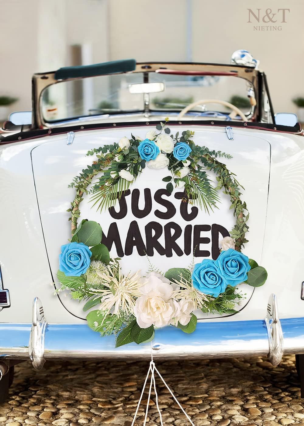 N&T NIETING Artificial Flowers 50pcs Real Looking Blue Foam Fake Roses with Stems for DIY Wedding Bouquets White Bridal Shower Centerpieces Arrangements Party Tables Decorations