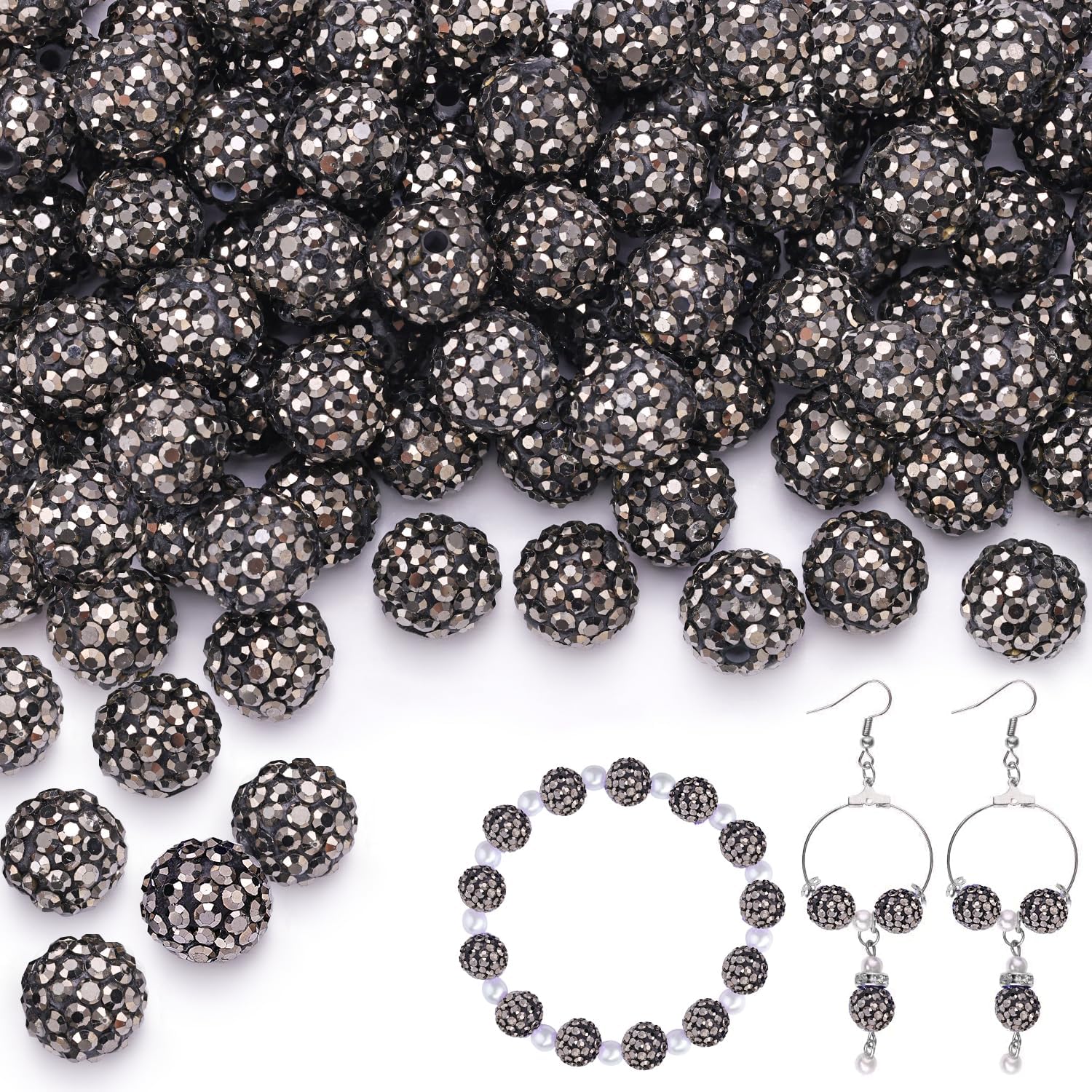 150 pcs 10mm Rhinestone Beads for Jewelry Making, Hematite Shiny Round Shamballa Disco Beads Bulk, Sparkle Crystal Clay Christmas for Bracelet Baseball Necklace Earring Crafting and DIY