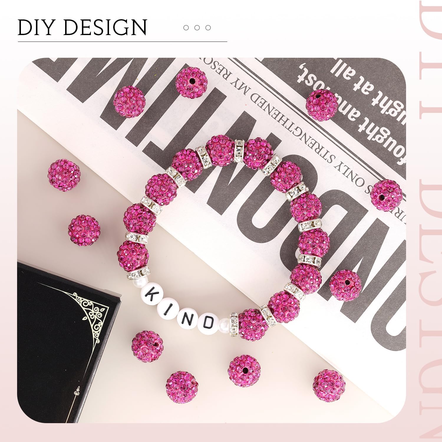 150 pcs 10mm Rhinestone Beads for Jewelry Making, Fuchsia Shiny Round Shamballa Disco Beads Bulk, Sparkle Crystal Clay Christmas for Bracelet Baseball Necklace Earring Crafting and DIY