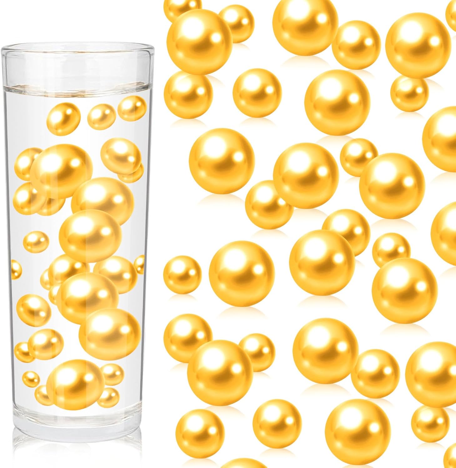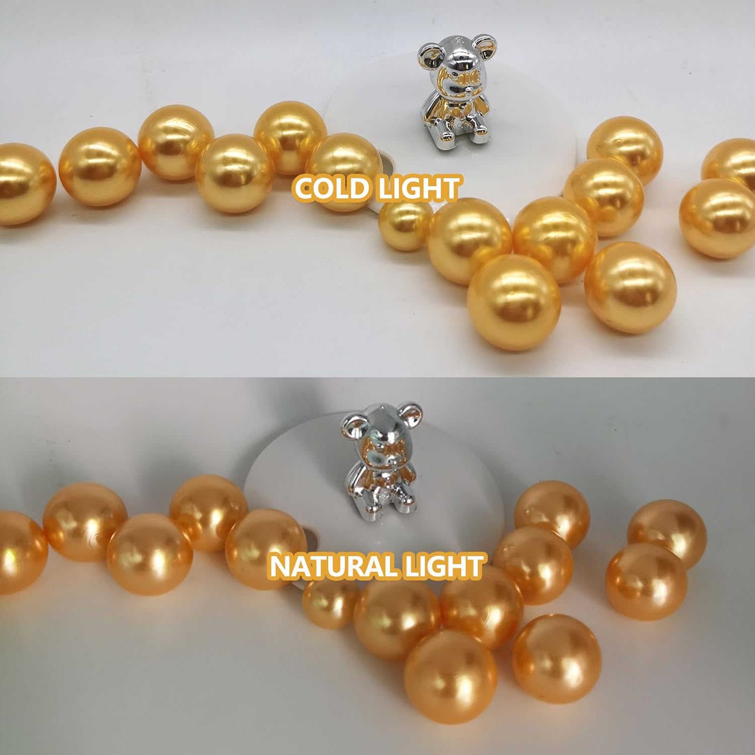 100PCS Golden Yellow Faux Pearls Beads for Centerpiece Vases, Vase Filler Faux Pearls, No Holes Filler Beads for Party Mardi Gras Wedding Table Decor, 14/20/30mm